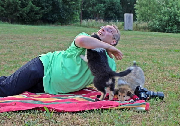 Weiterhin kam Thomas Quentin zum Fotoshooting für einen Colliewelpenkalender für 2016. Dieses Unterfangen war schwieriger als Gedacht, die Models hatten ihn fest im Griff.