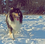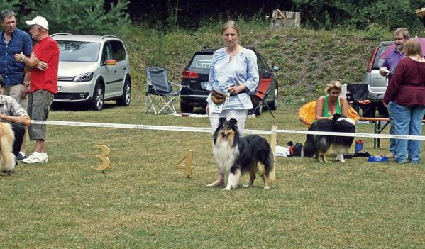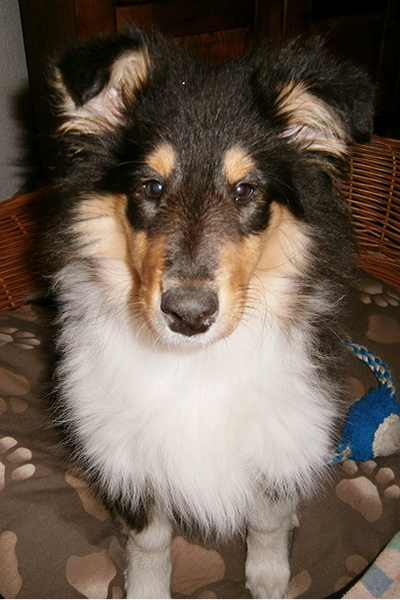 -tricolour Hündin in exzellenter Farbe und Kondition präsentiert