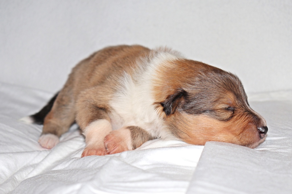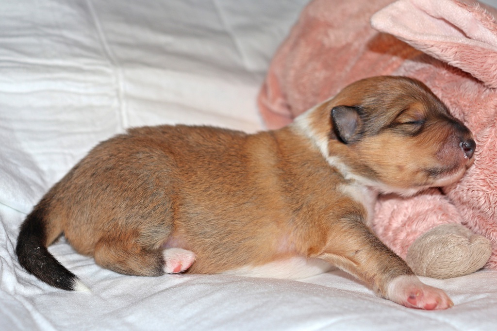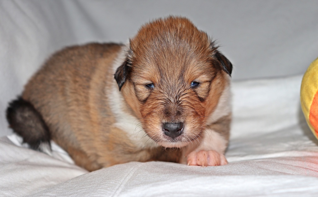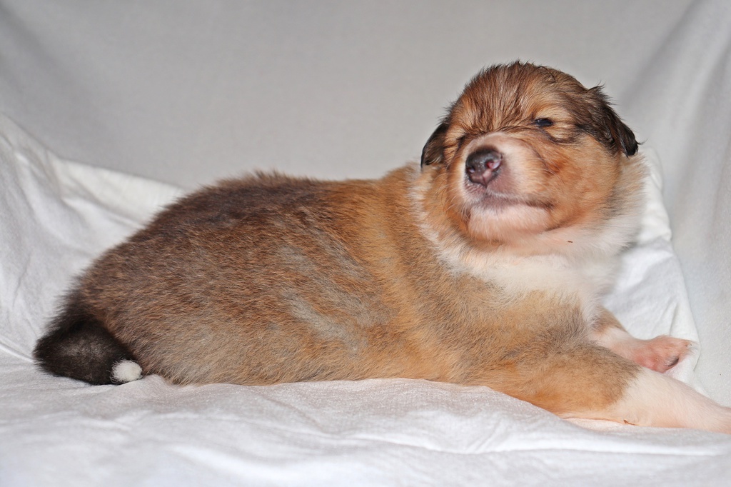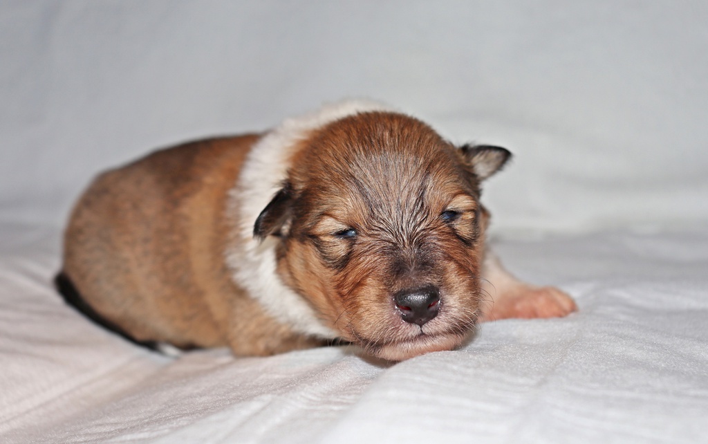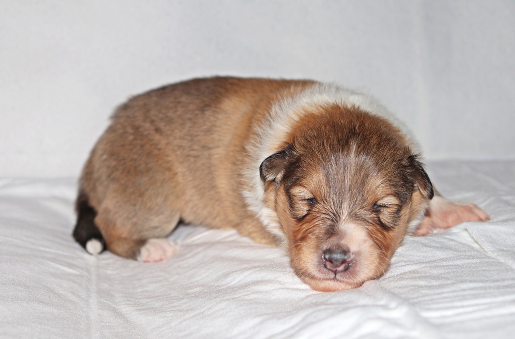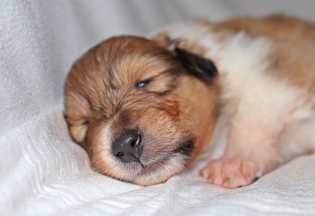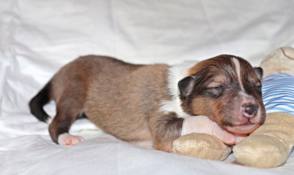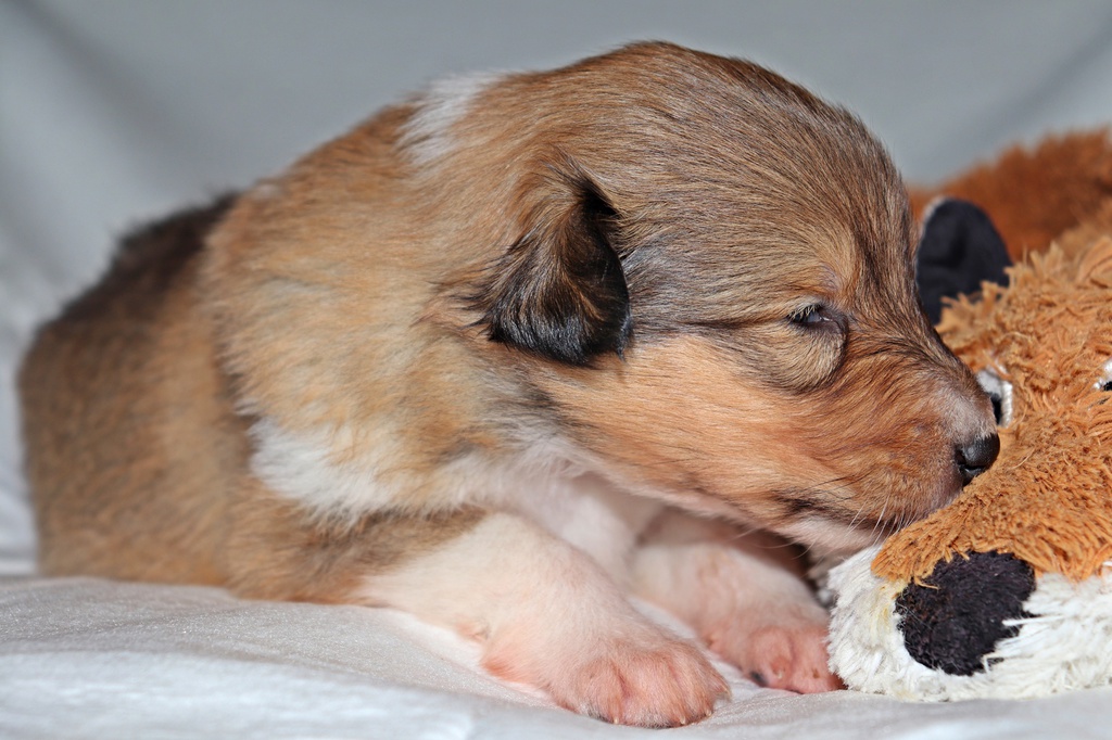 Mittlerweile haben die Welpen kräftig zugenommen und wiegen zwischen 820 und 1040 Gramm. Auch die Augen öffnen sich allmählich und erste erste taumelige Gehversuche werden in der Wurfkiste unternommen. Ihre Mama Ary hat sich vollständig vom Kaiserschnitt erholt und kümmert sich liebevoll um ihre Fellkinder.