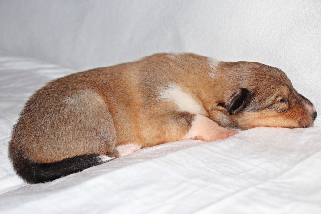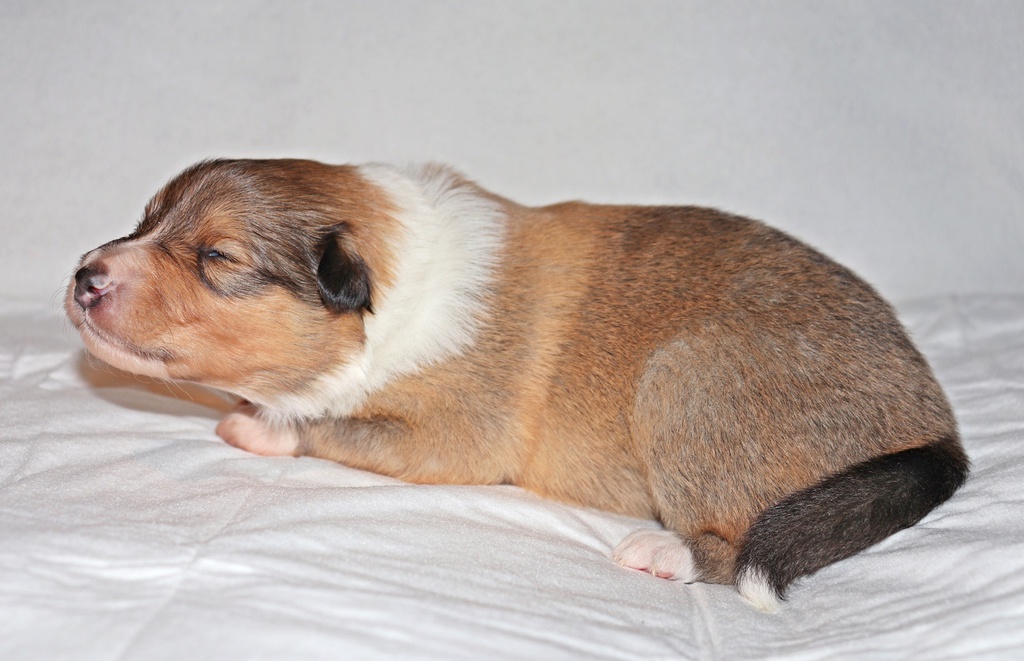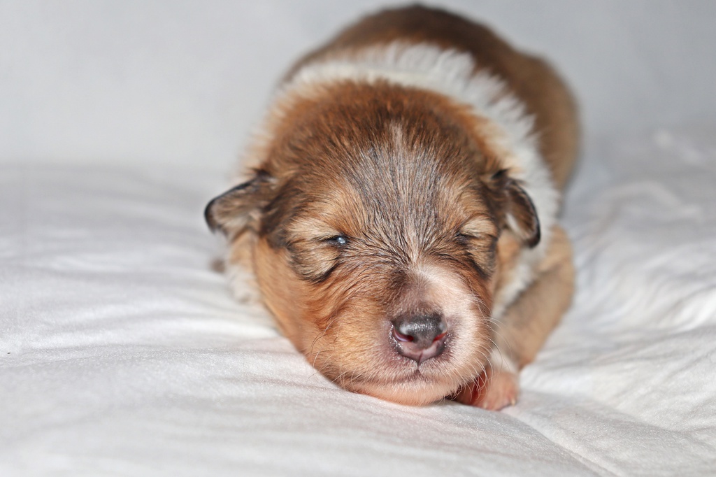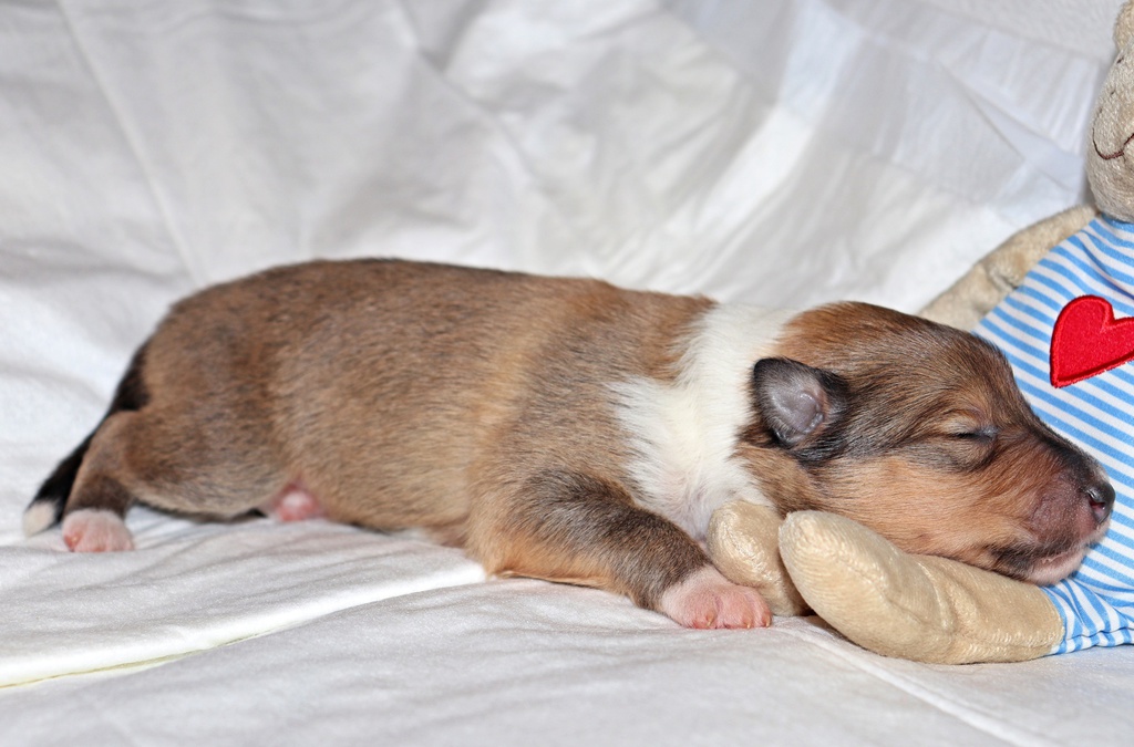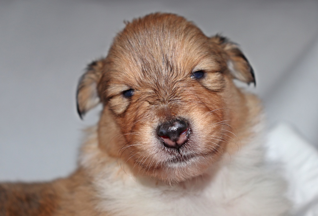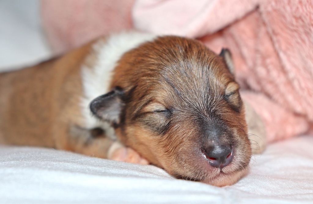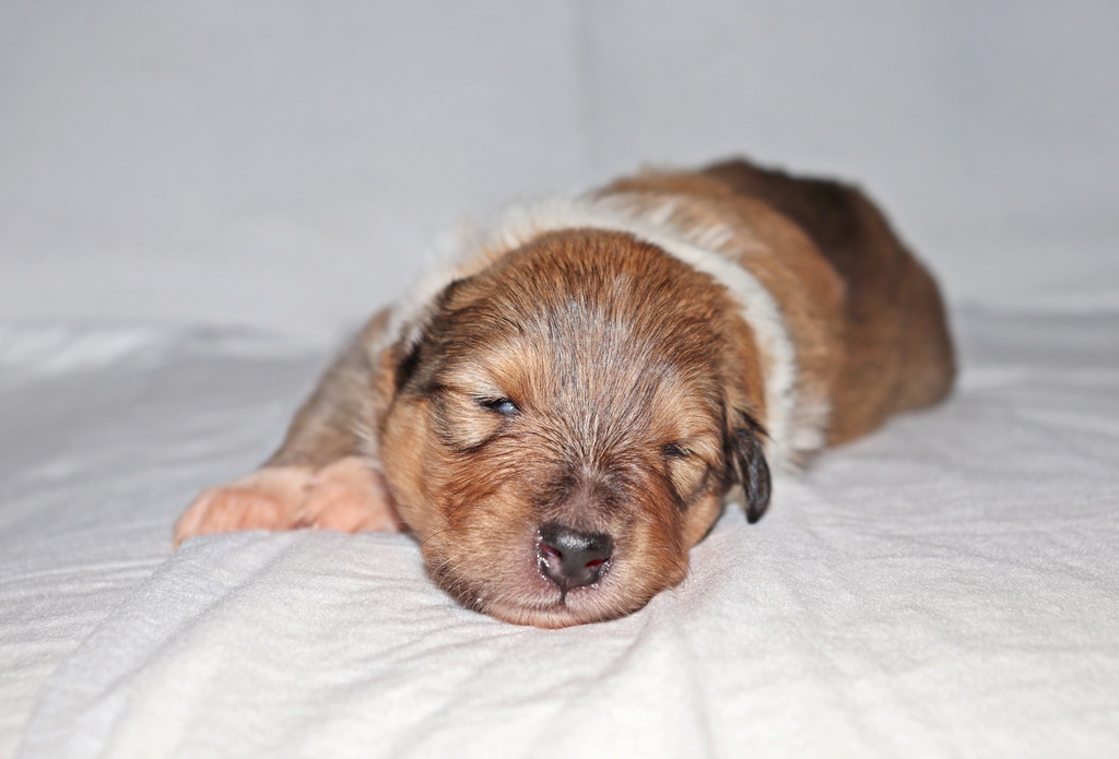 Mittlerweile haben die Welpen kräftig zugenommen und wiegen zwischen 820 und 1040 Gramm. Auch die Augen öffnen sich allmählich und erste erste taumelige Gehversuche werden in der Wurfkiste unternommen. Ihre Mama Ary hat sich vollständig vom Kaiserschnitt erholt und kümmert sich liebevoll um ihre Fellkinder.