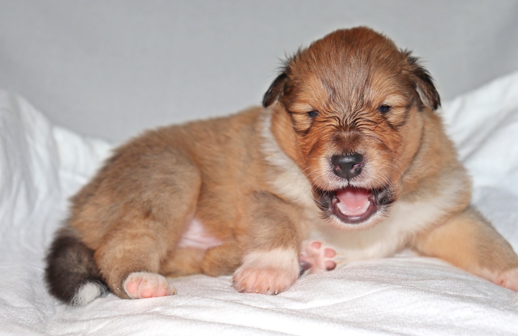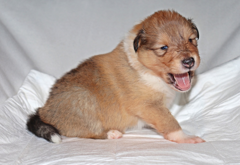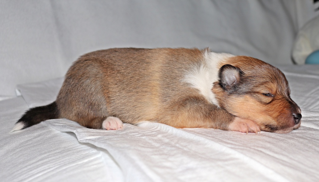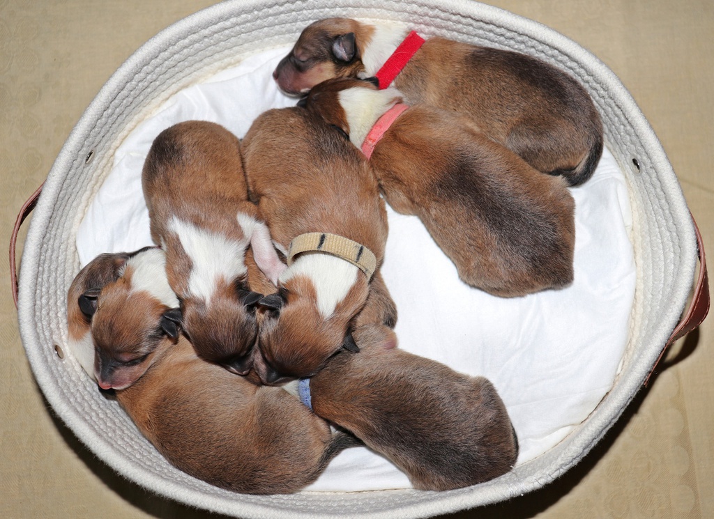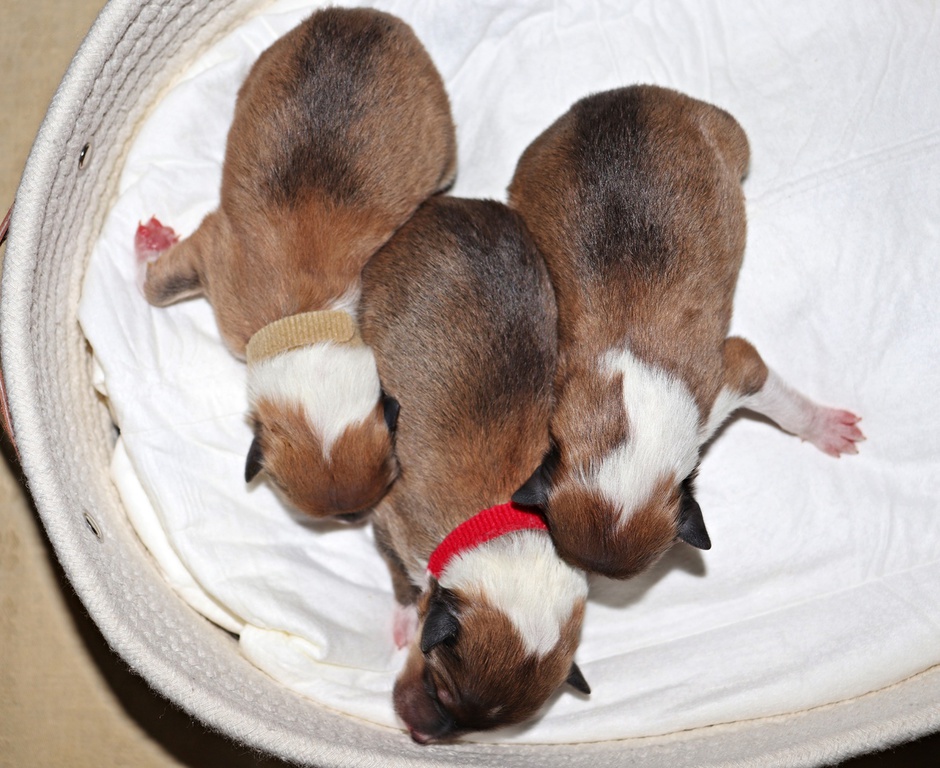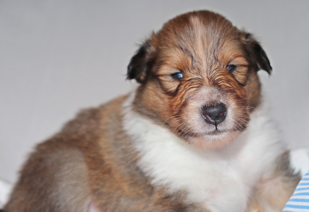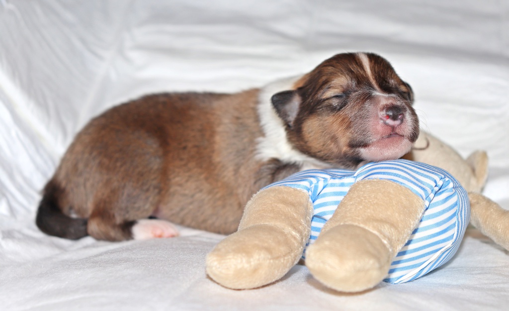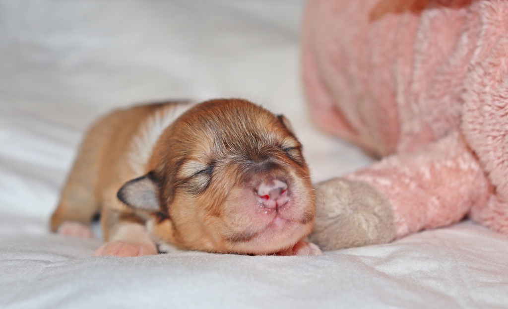Mittlerweile haben die Welpen kräftig zugenommen und wiegen zwischen 820 und 1040 Gramm. Auch die Augen öffnen sich allmählich und erste erste taumelige Gehversuche werden in der Wurfkiste unternommen. Ihre Mama Ary hat sich vollständig vom Kaiserschnitt erholt und kümmert sich liebevoll um ihre Fellkinder.