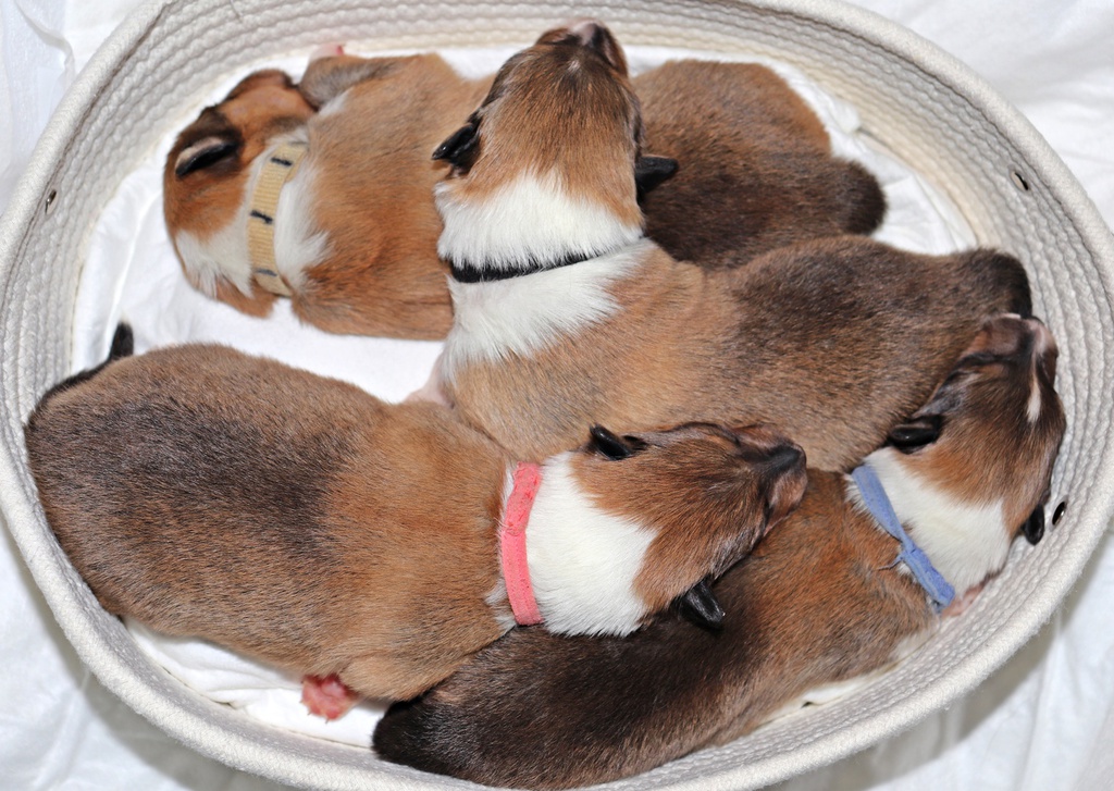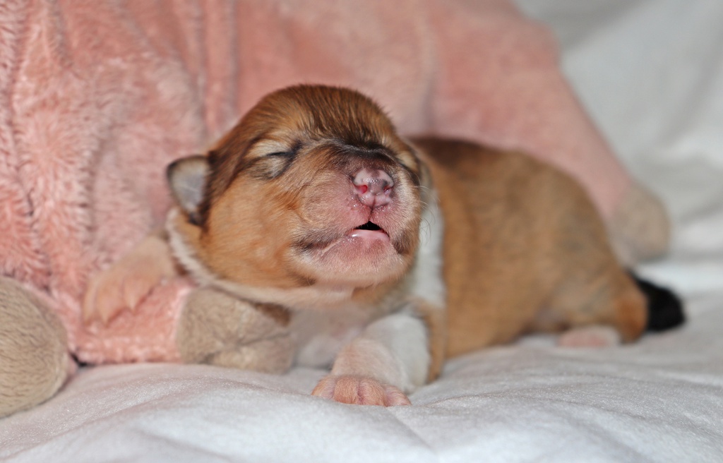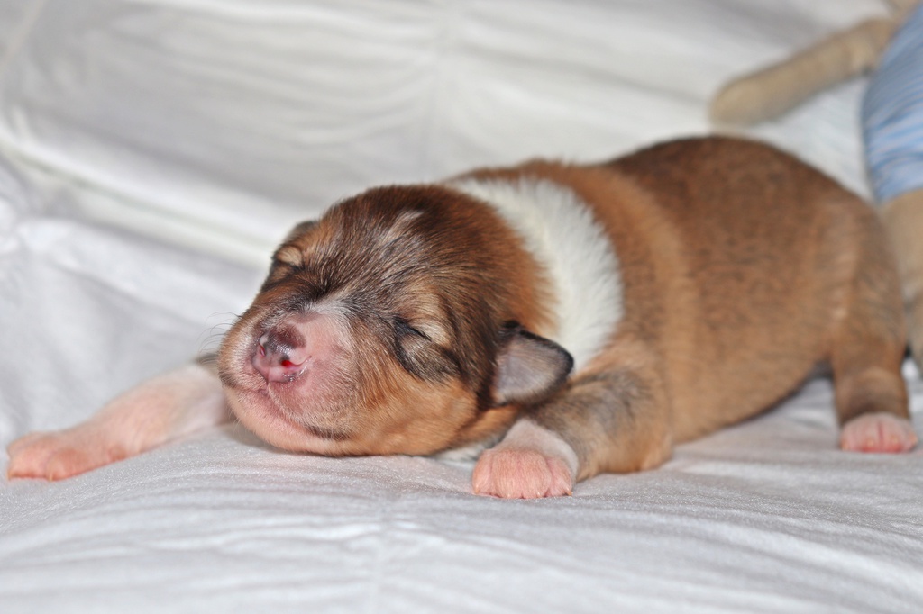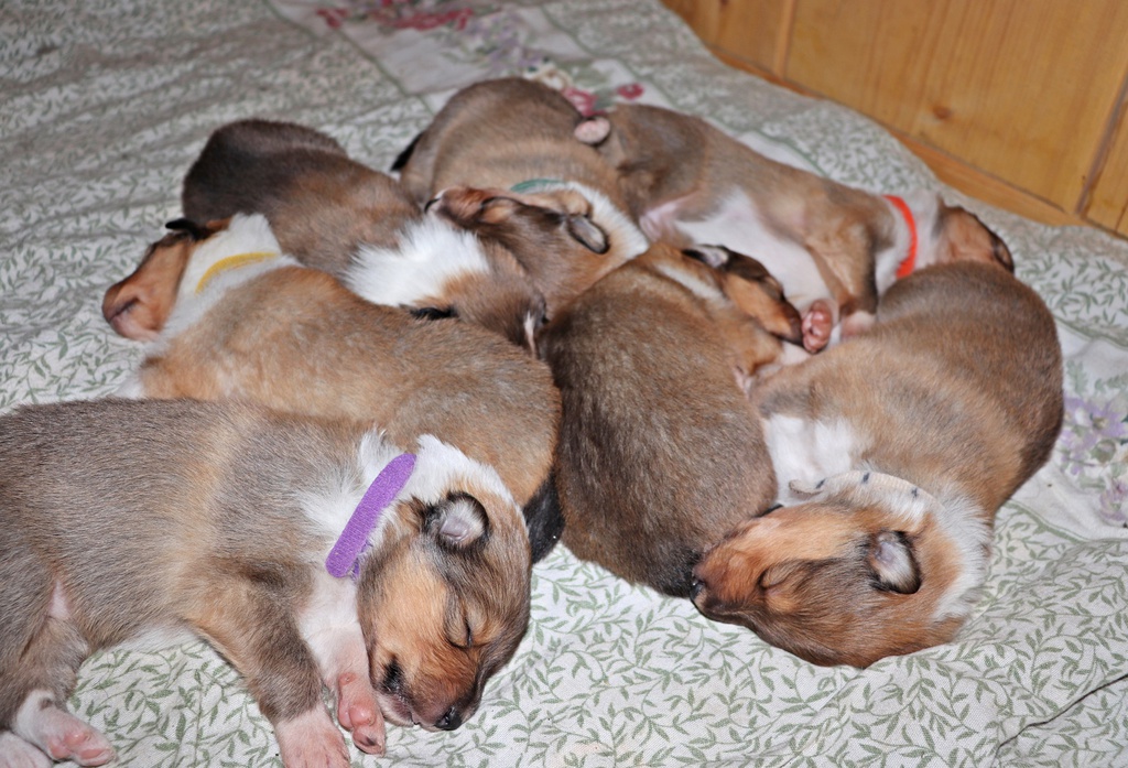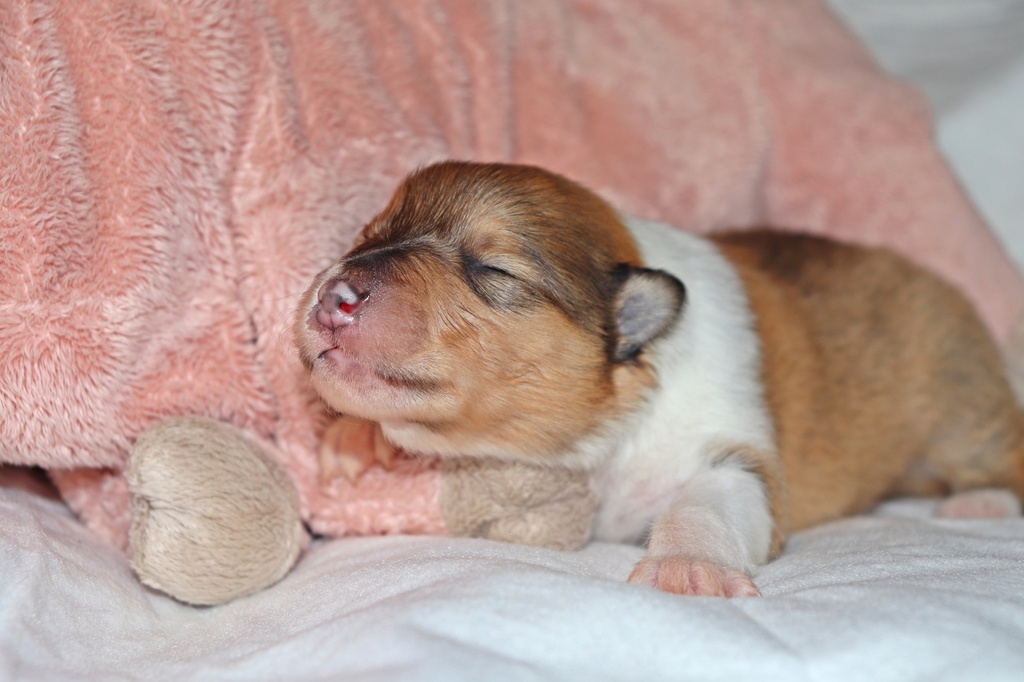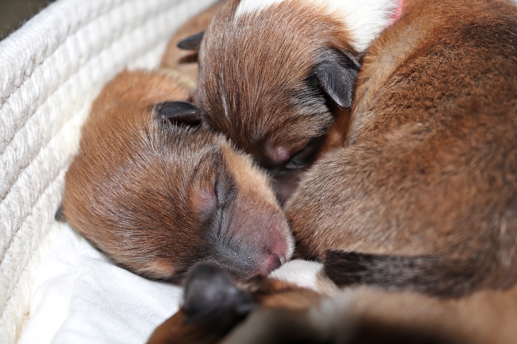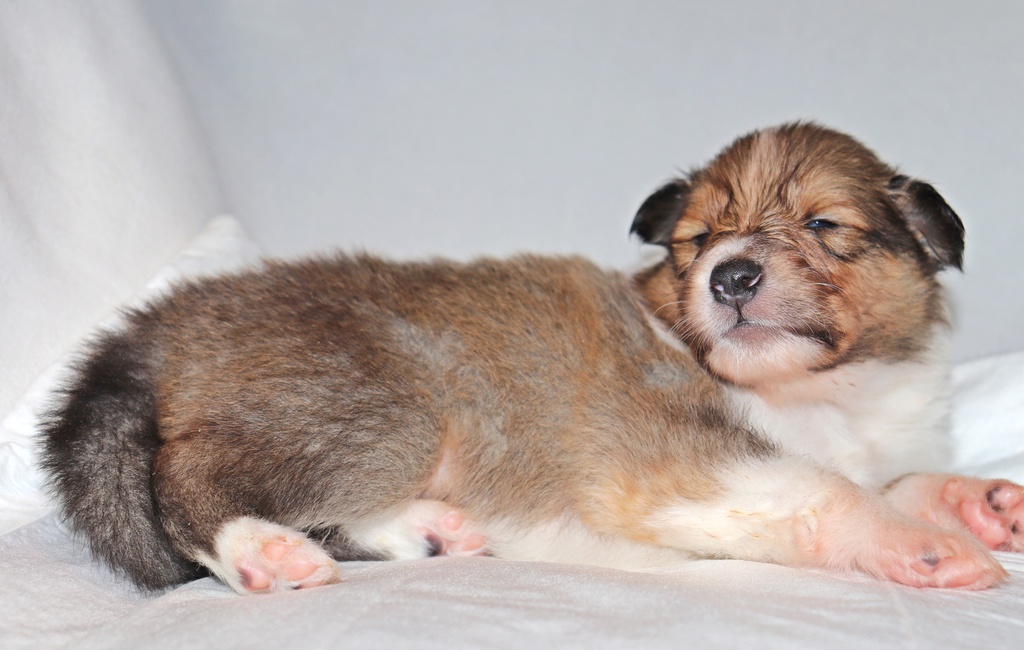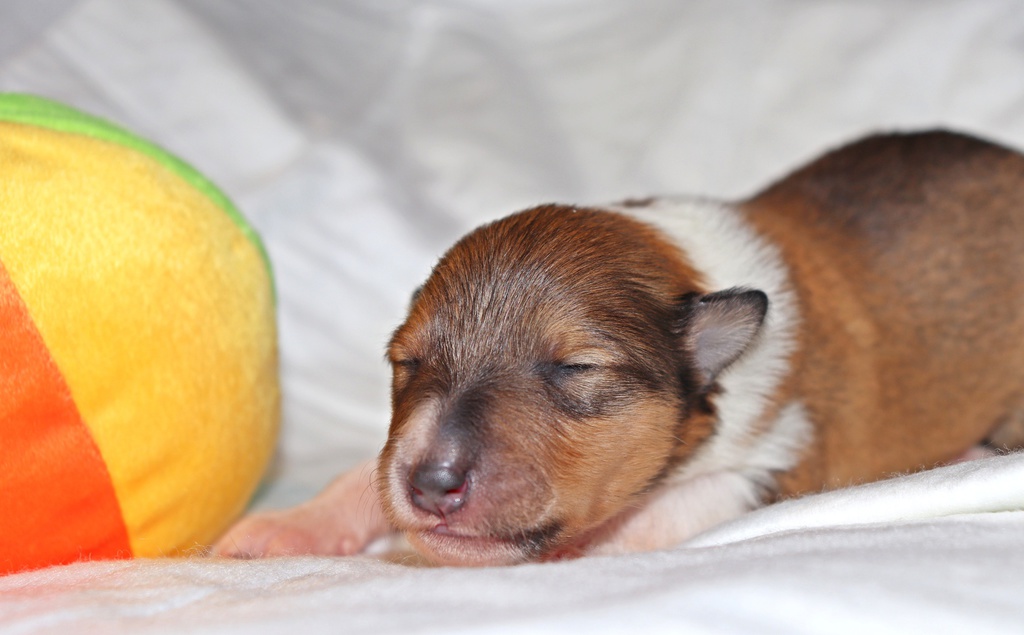 Mittlerweile haben die Welpen kräftig zugenommen und wiegen zwischen 820 und 1040 Gramm. Auch die Augen öffnen sich allmählich und erste erste taumelige Gehversuche werden in der Wurfkiste unternommen. Ihre Mama Ary hat sich vollständig vom Kaiserschnitt erholt und kümmert sich liebevoll um ihre Fellkinder.