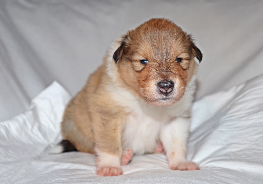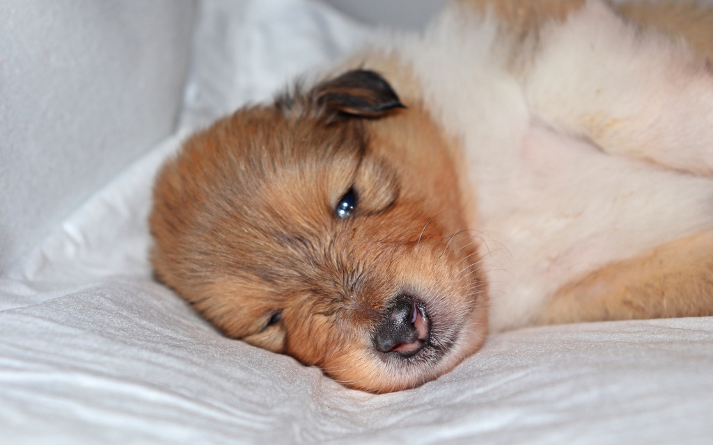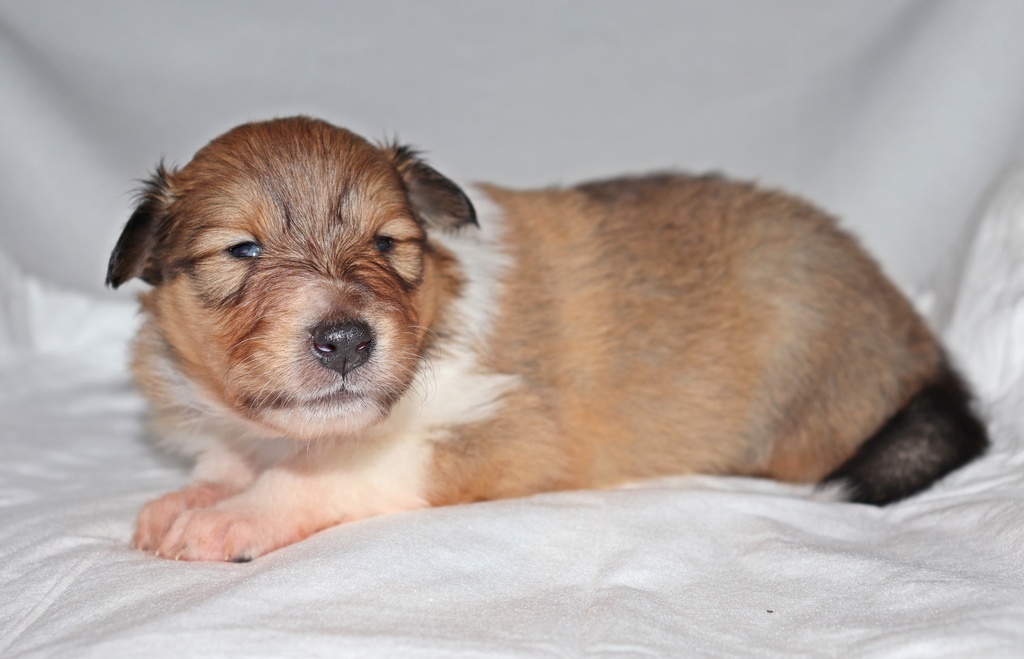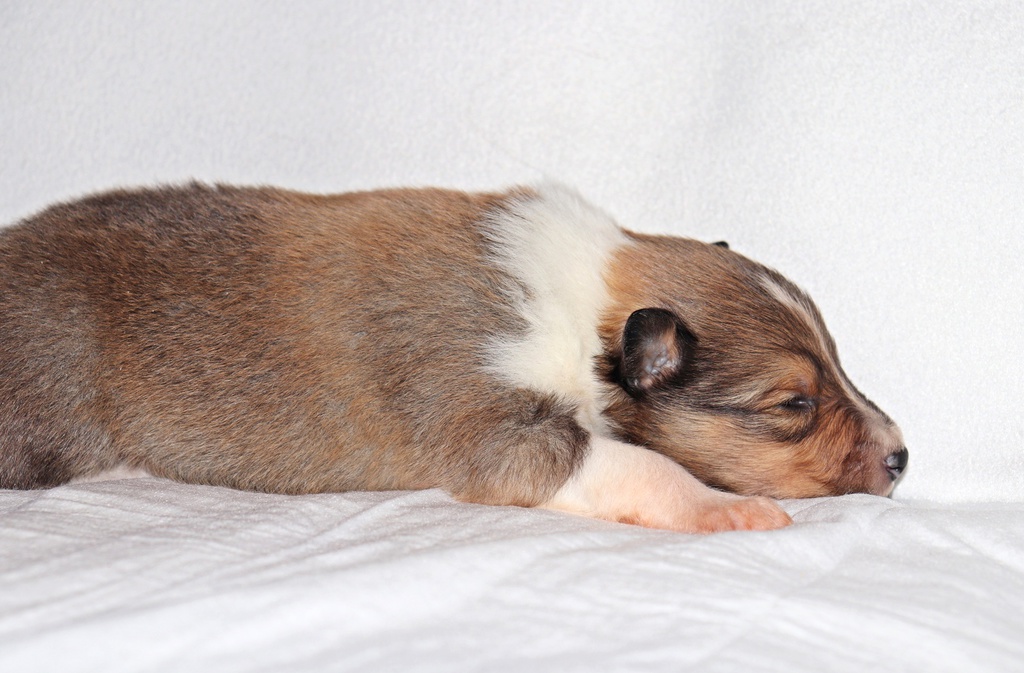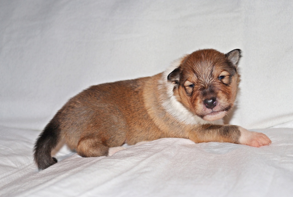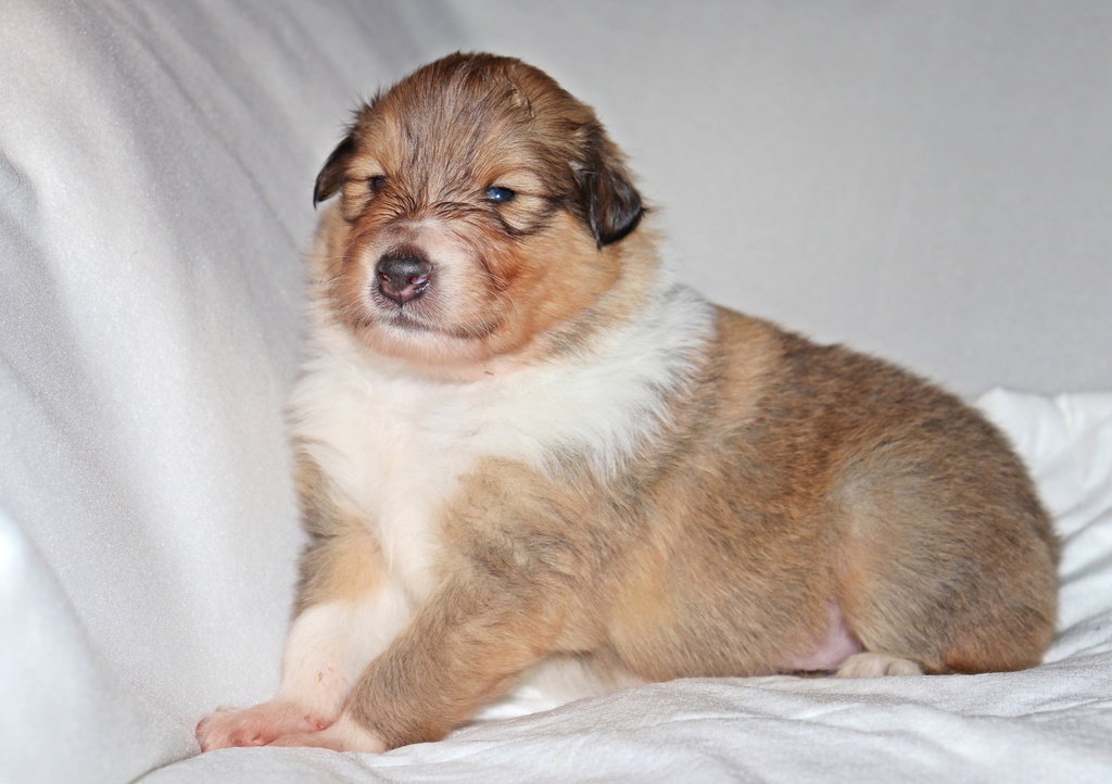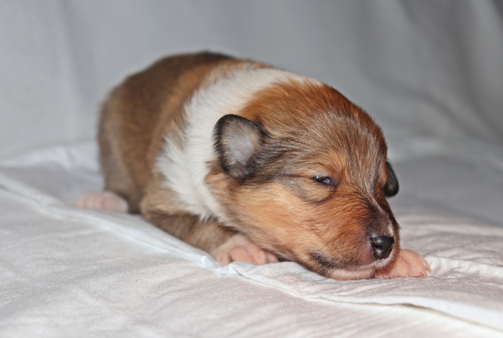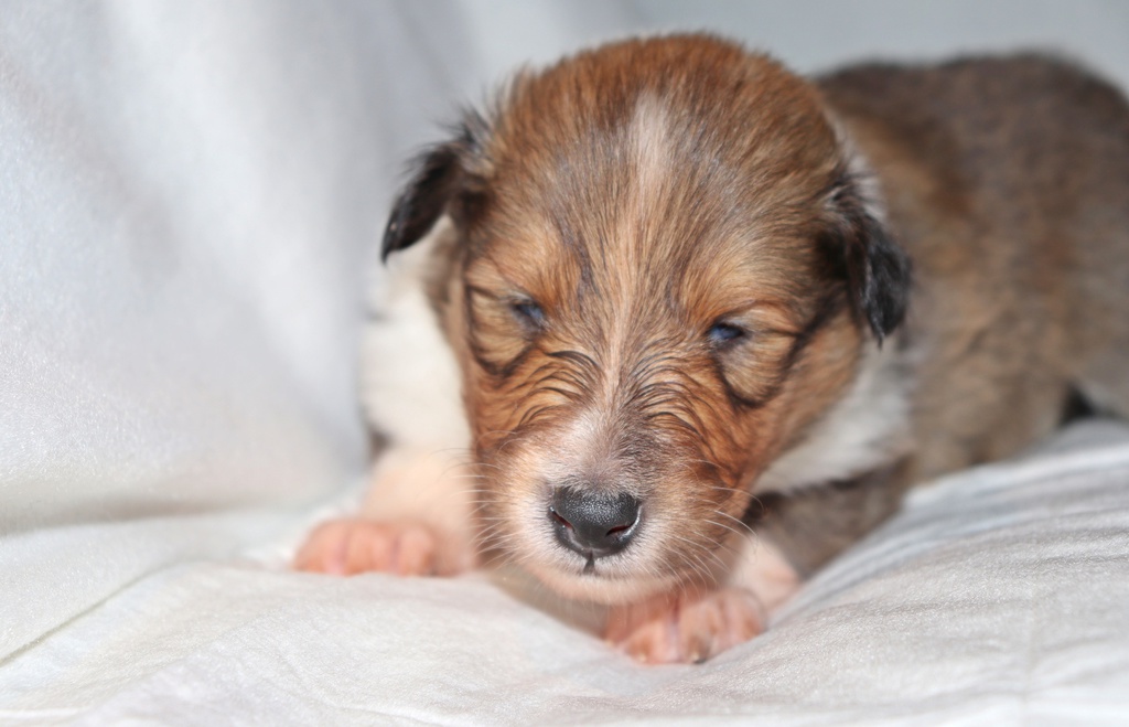 Mittlerweile haben die Welpen kräftig zugenommen und wiegen zwischen 820 und 1040 Gramm. Auch die Augen öffnen sich allmählich und erste erste taumelige Gehversuche werden in der Wurfkiste unternommen. Ihre Mama Ary hat sich vollständig vom Kaiserschnitt erholt und kümmert sich liebevoll um ihre Fellkinder.