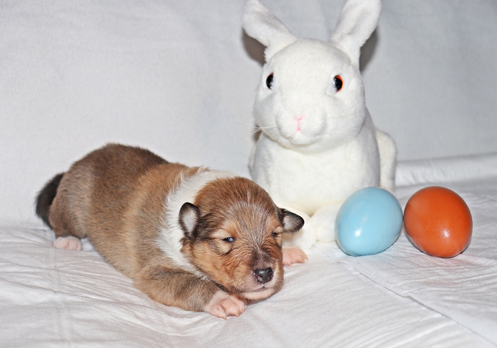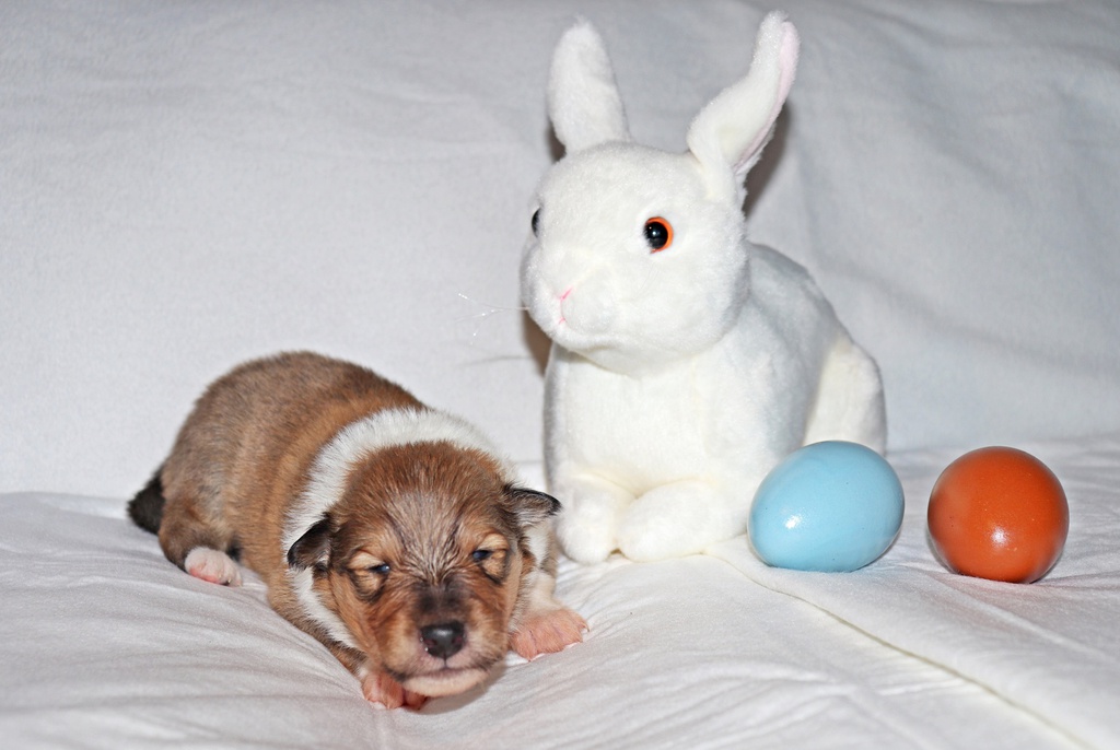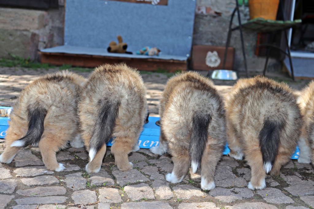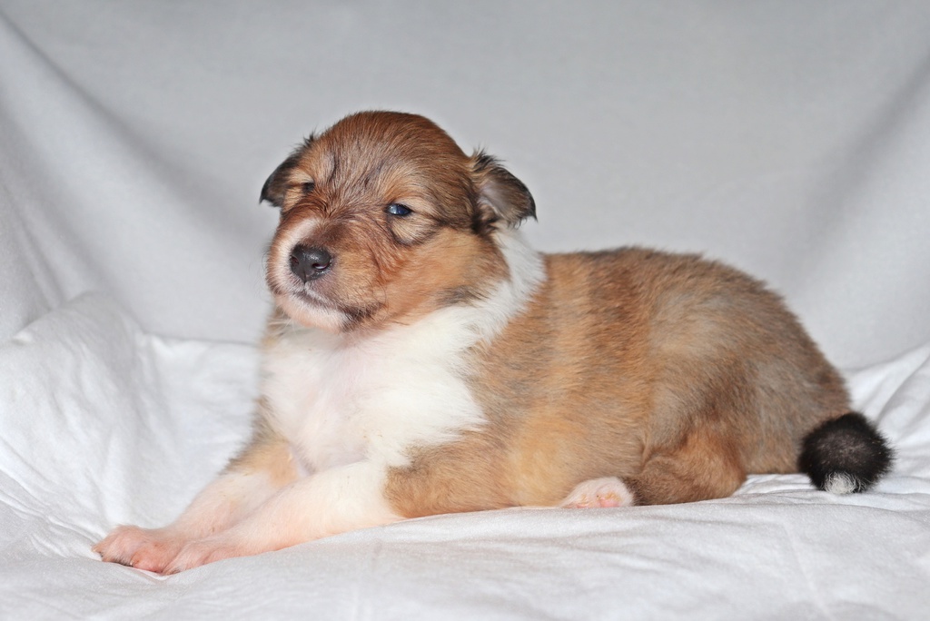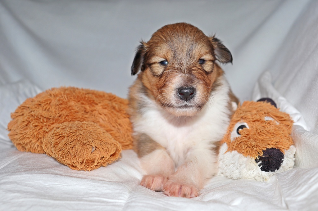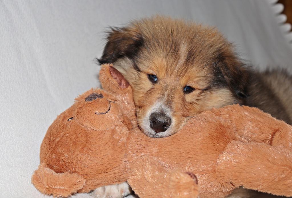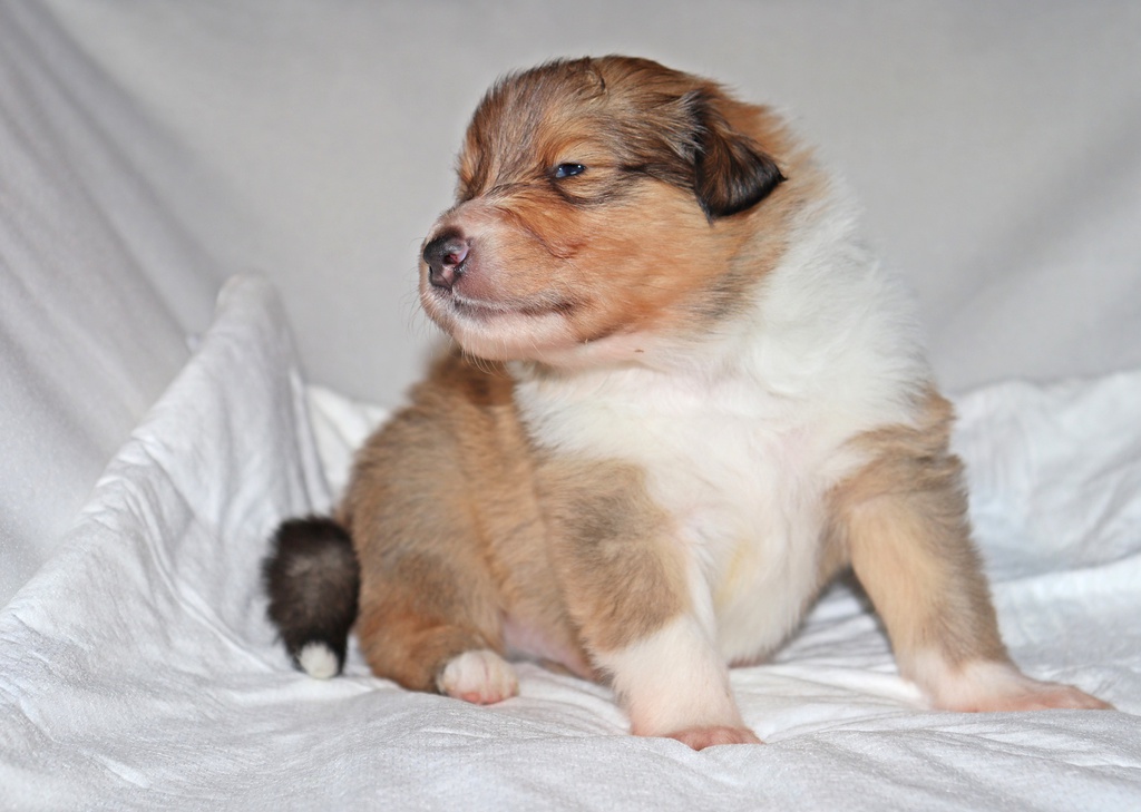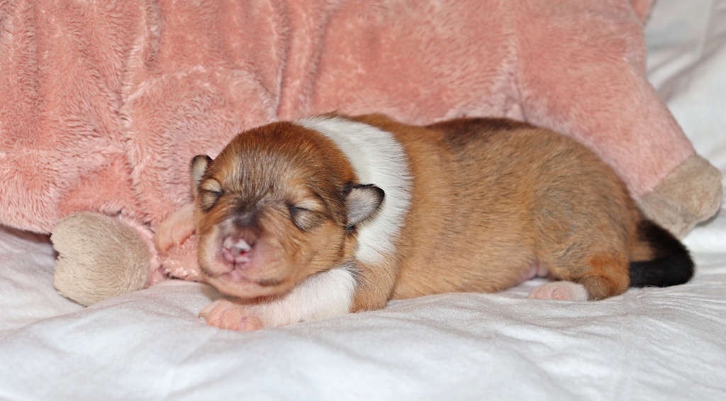 Mittlerweile haben die Welpen kräftig zugenommen und wiegen zwischen 820 und 1040 Gramm. Auch die Augen öffnen sich allmählich und erste erste taumelige Gehversuche werden in der Wurfkiste unternommen. Ihre Mama Ary hat sich vollständig vom Kaiserschnitt erholt und kümmert sich liebevoll um ihre Fellkinder.