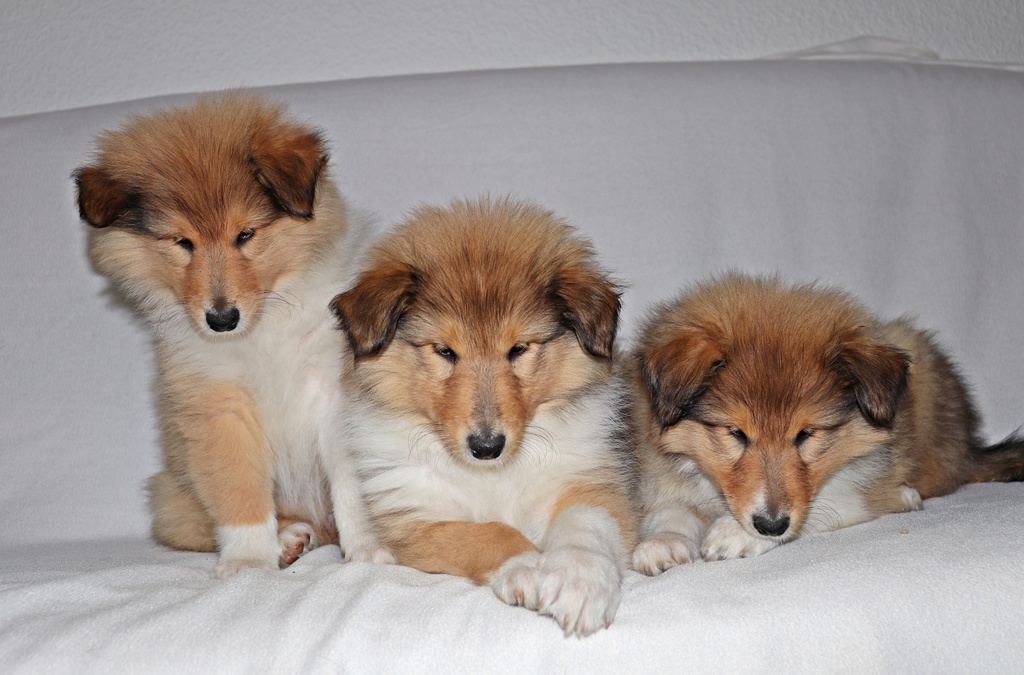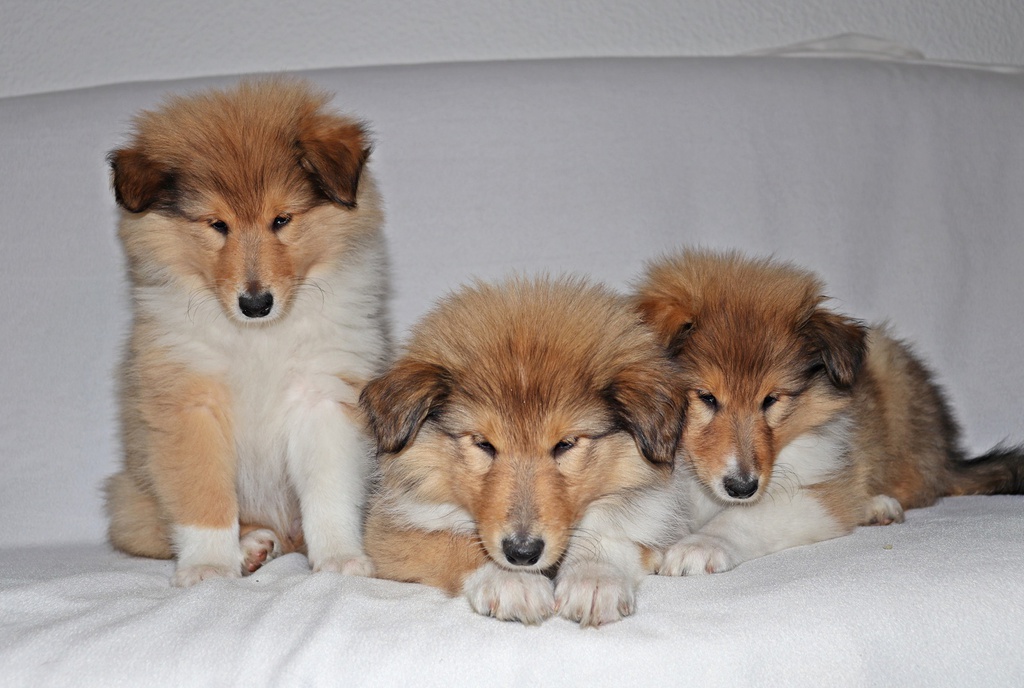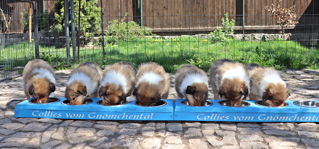Mittlerweile haben alle Welpen ihr zukünftiges Zuhause gefunden. Sie haben sich gut in ihrem Welpenzimmer mit Auslauf eingelebt. Sie spielen und toben viel auf dem Hof herum und erkunden diesen. Sie sind sehr zutraulich und aufgeweckt gegenüber uns und unseren anderen Collies.