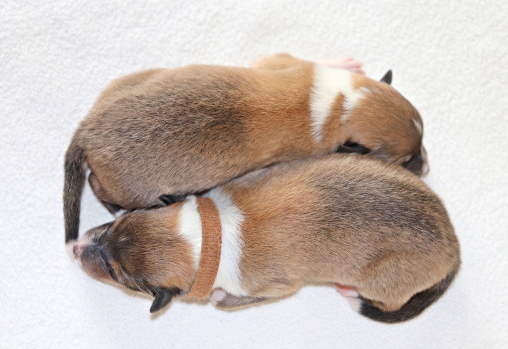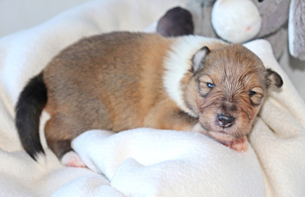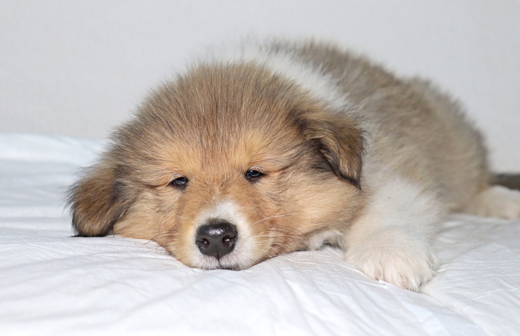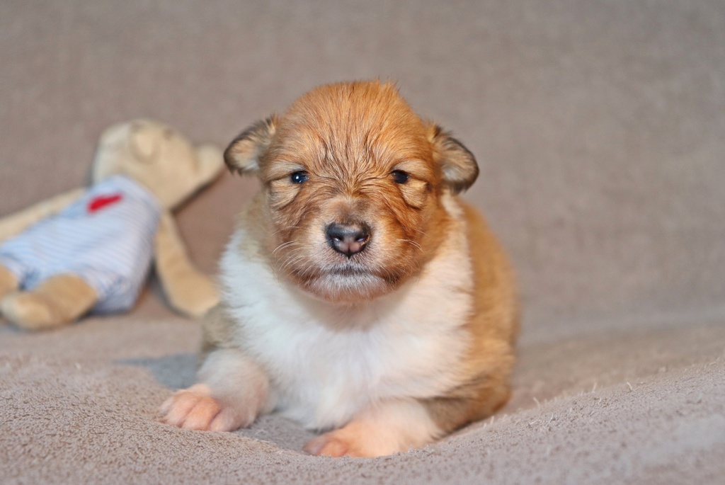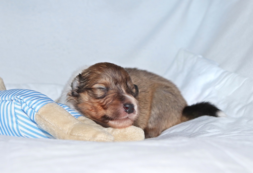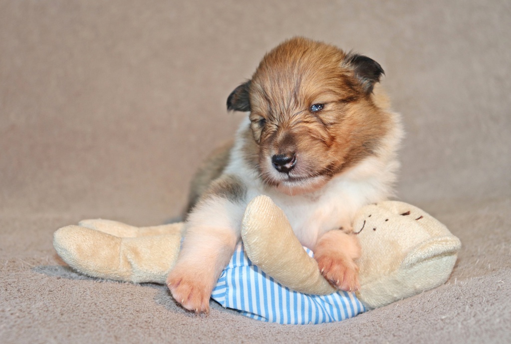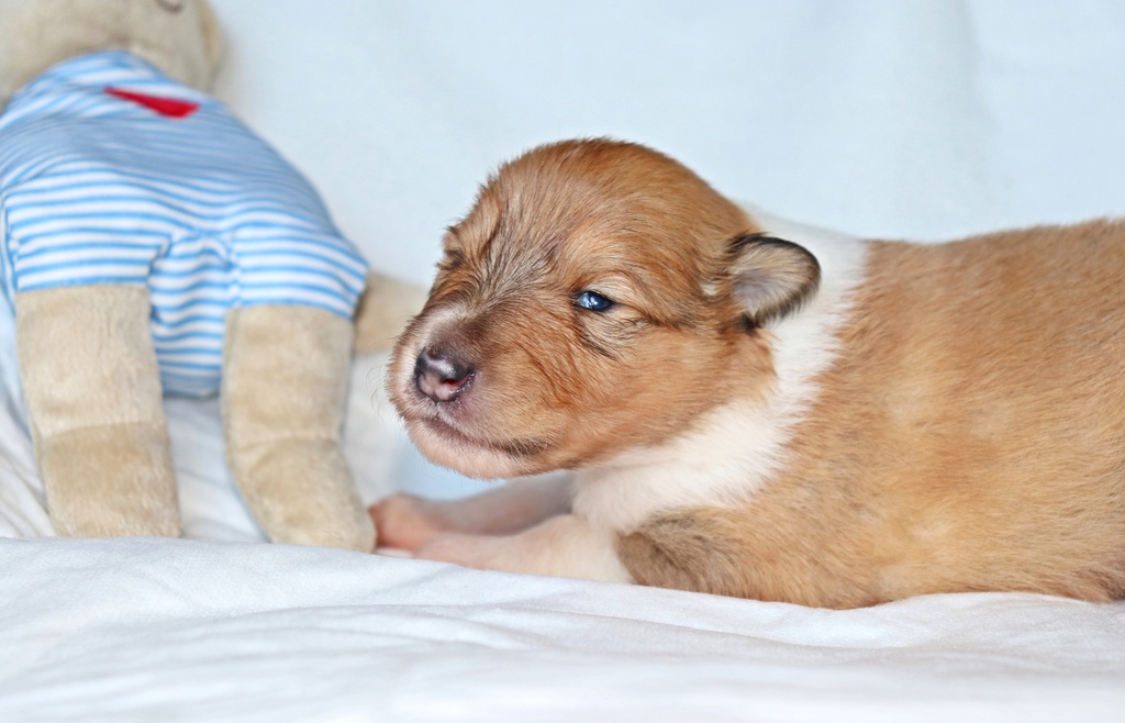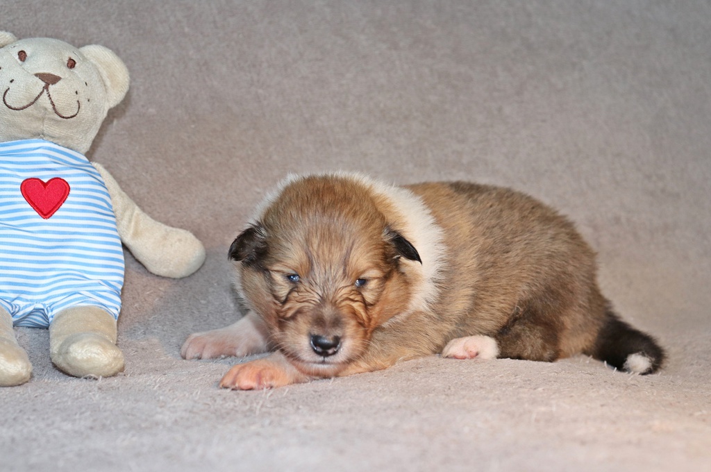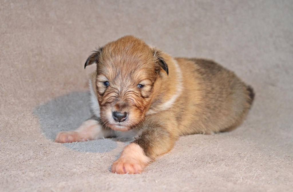 Nun sind die Welpen schon 2 Wochen alt und so langsam öffnen sich die Äuglein. Sie sind auch sehr mobil im erkunden der Wurfkiste und haben ihr Geburtsgewicht mehr als verdoppelt. Mama Dacota hat ihre Rasselbande gut im Griff. ;-)