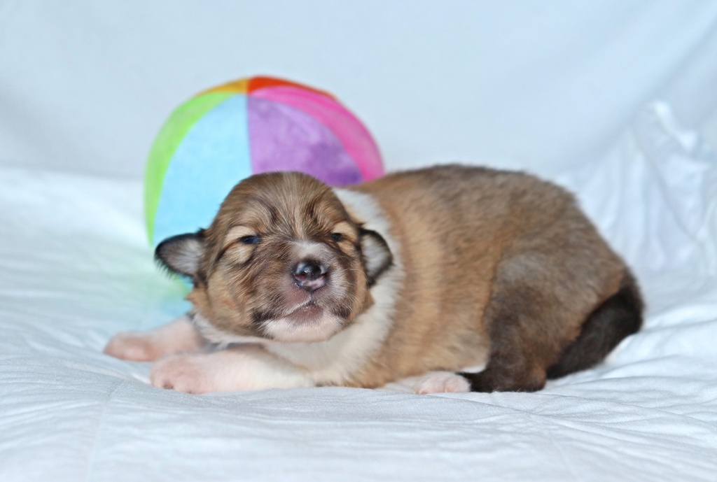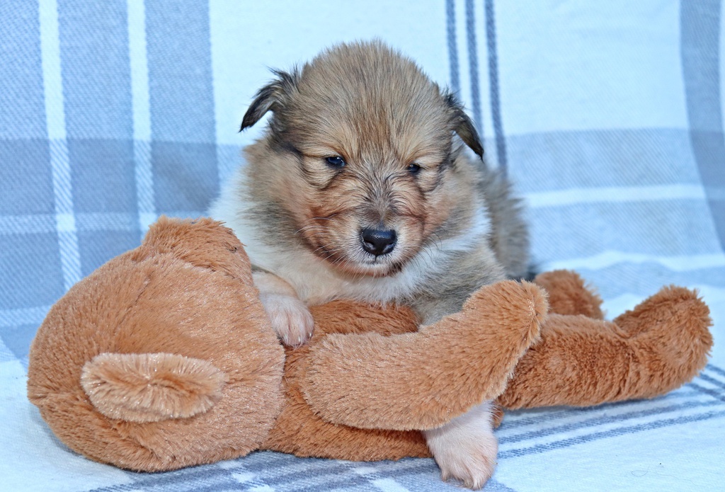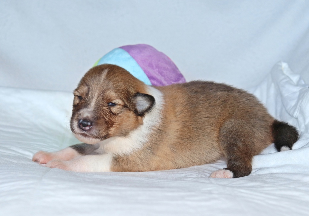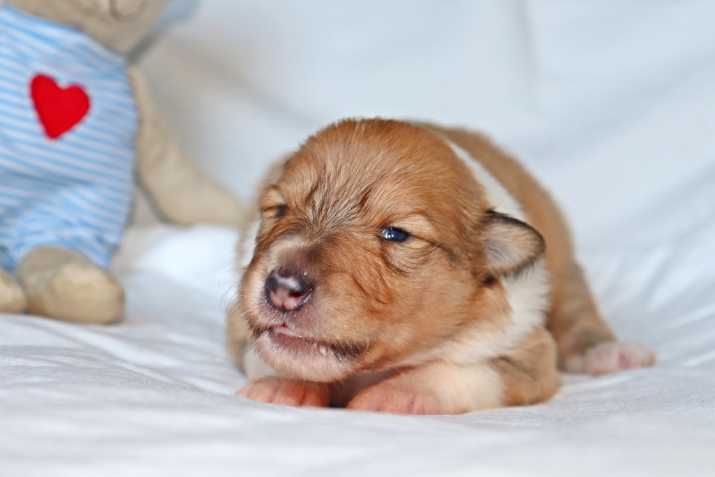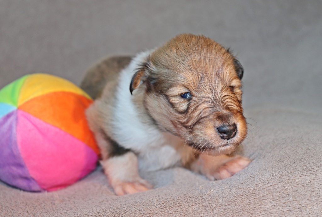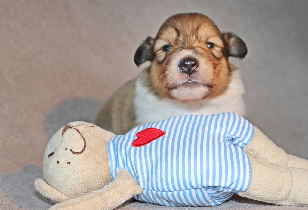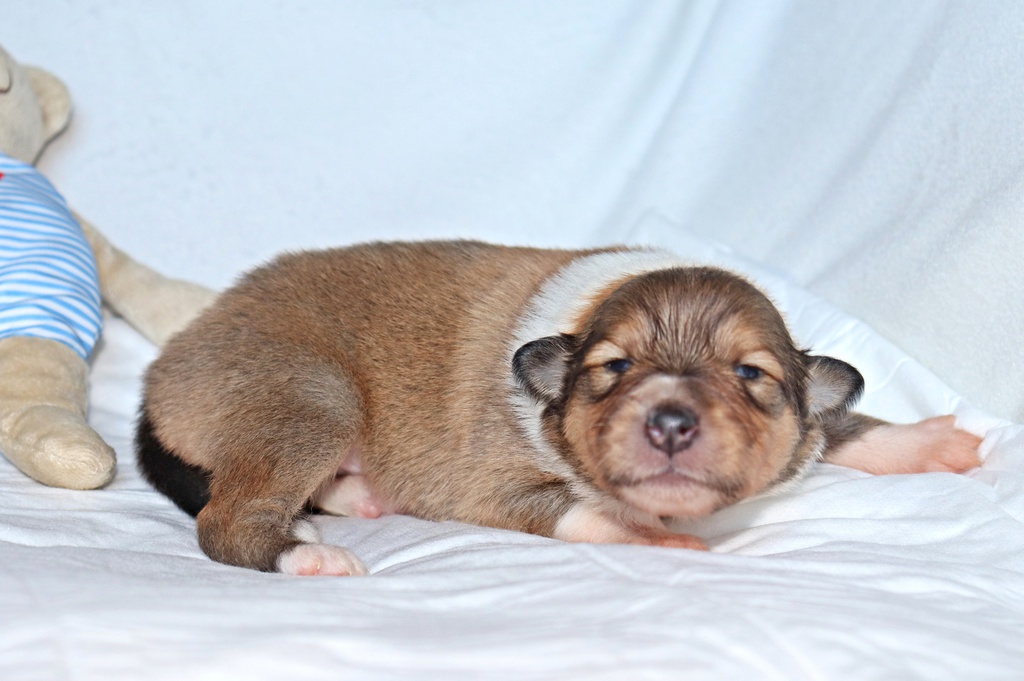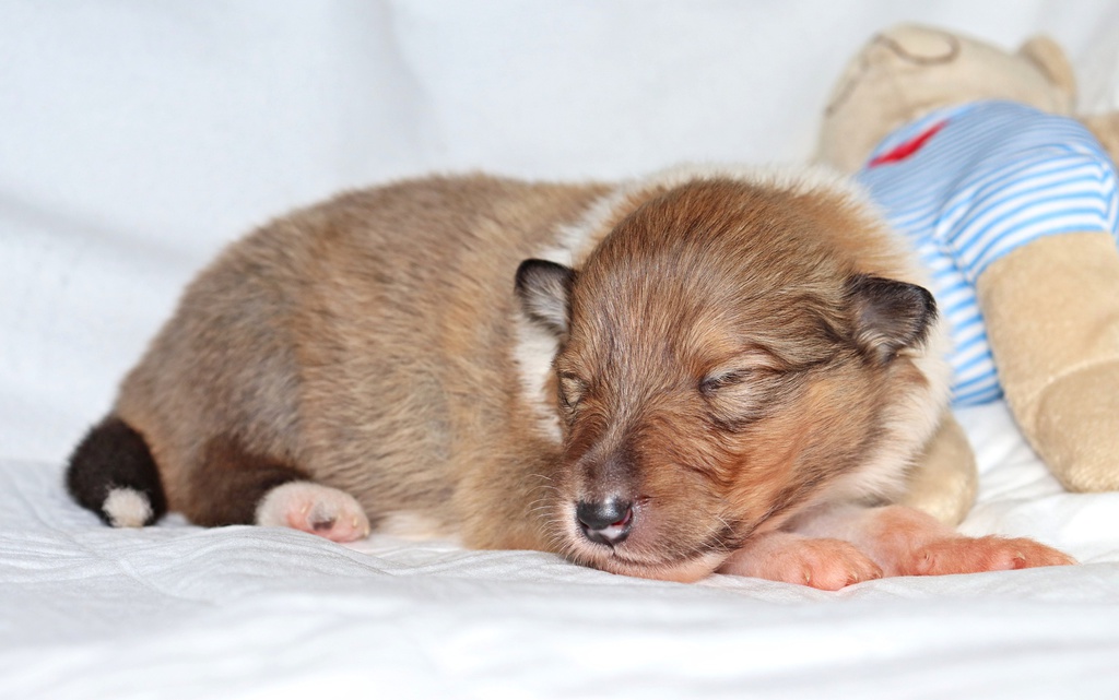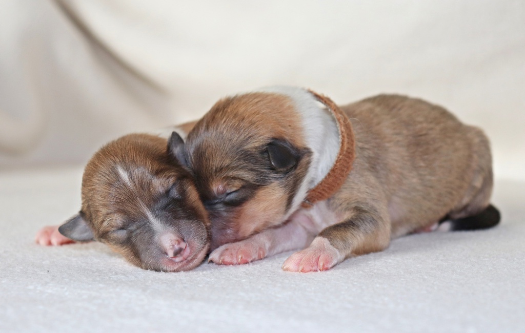 Nun sind die Welpen schon 2 Wochen alt und so langsam öffnen sich die Äuglein. Sie sind auch sehr mobil im erkunden der Wurfkiste und haben ihr Geburtsgewicht mehr als verdoppelt. Mama Dacota hat ihre Rasselbande gut im Griff. ;-)