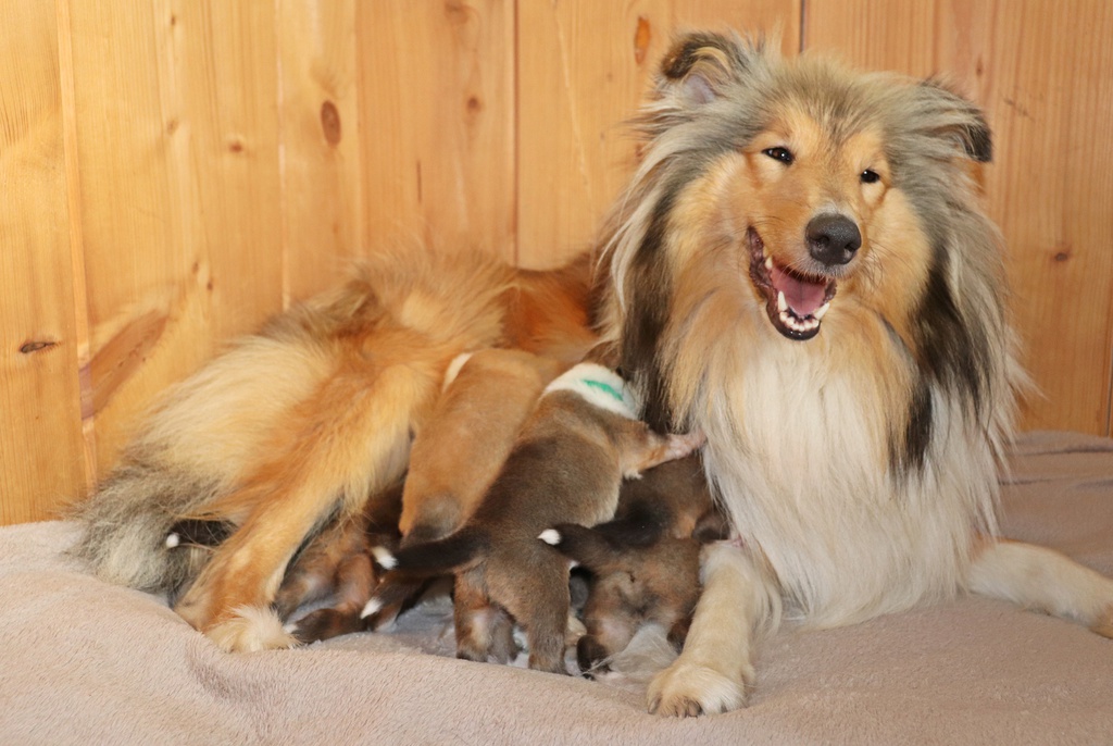 In den frühen Morgenstunden ist unser F-Wurf von unserer Hündin Dacota zur Welt gekommen. Die Geburt verlief komplikationslos trotz der aktuellen Hitze. Es sind insgesamt 7 Welpen geboren worden und Dacota kümmert sich sehr rührend um ihre Welpenschar. Die Geburtsgewichte liegen zwischen 167 und 280 Gramm. Es sind 5 Jungs und 2 Mädchen in sablefarben, die zukünftig unseren Hof unsicher machen werden. ;-)