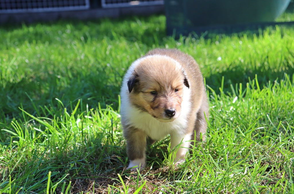 Heute haben die Welpen zum ersten mal selbstständig das Außengelände erkundet. Sie wohnen jetzt in ihrem Welpenzimmer mit Auslauf und können somit jederzeit die Sonnenstrahlen und die frische Luft genießen. Durch den unmittelbaren Kontakt zu unseren anderen Hunden, wird das Sozialverhalten untereinander geprägt.