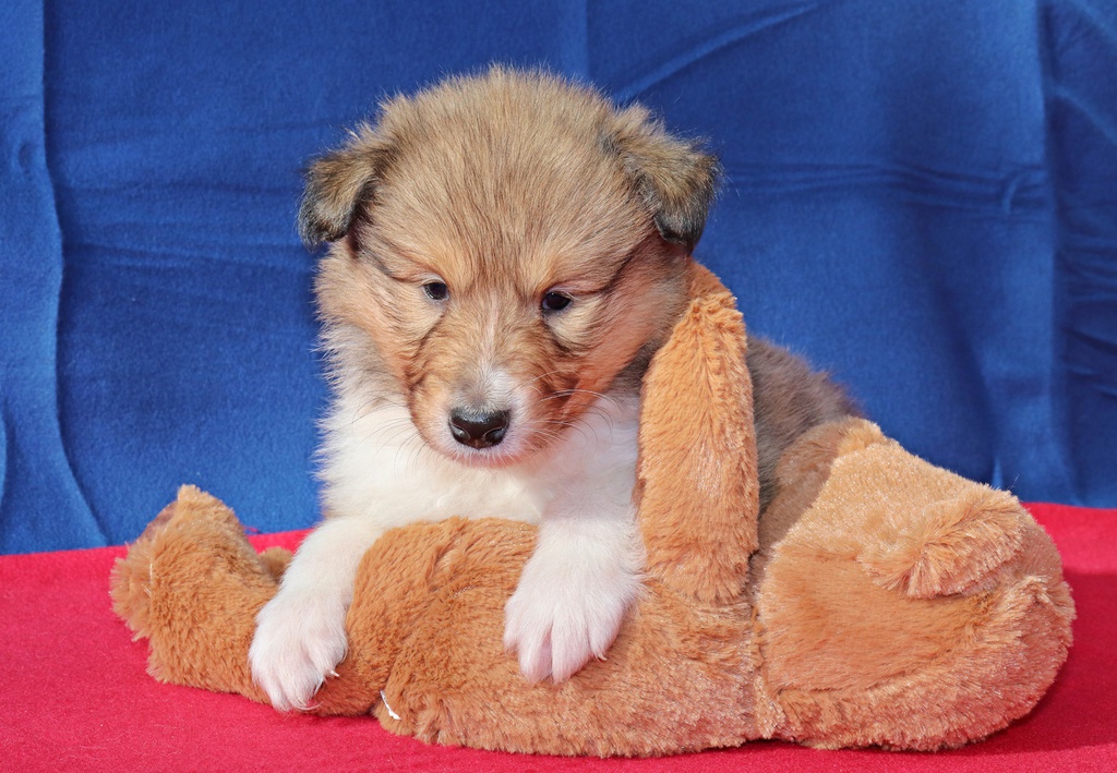 Die Welpen entwickeln sich sehr gut, mittlerweile laufen sie schon relativ sicher und fangen an miteinander zu spielen und zu raufen.