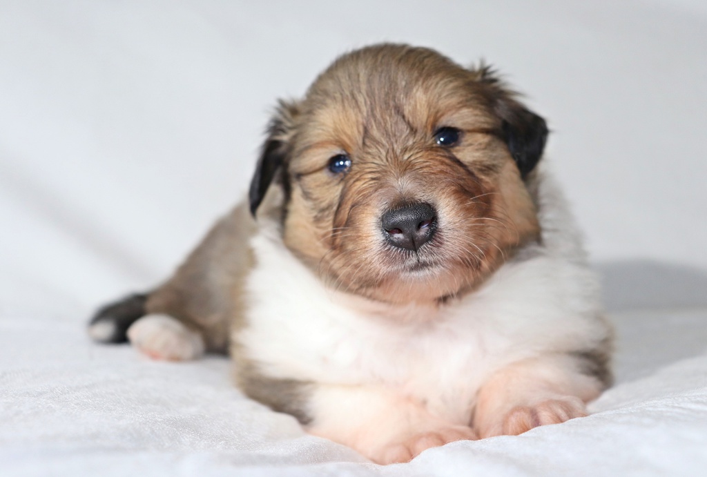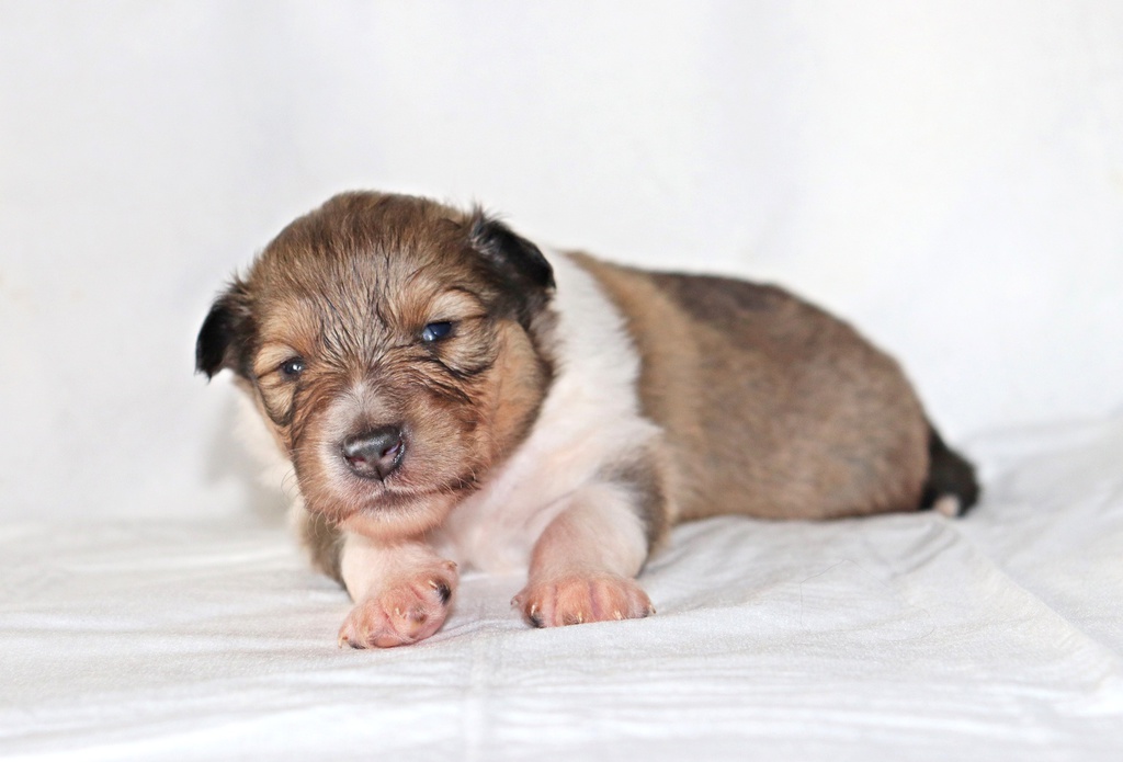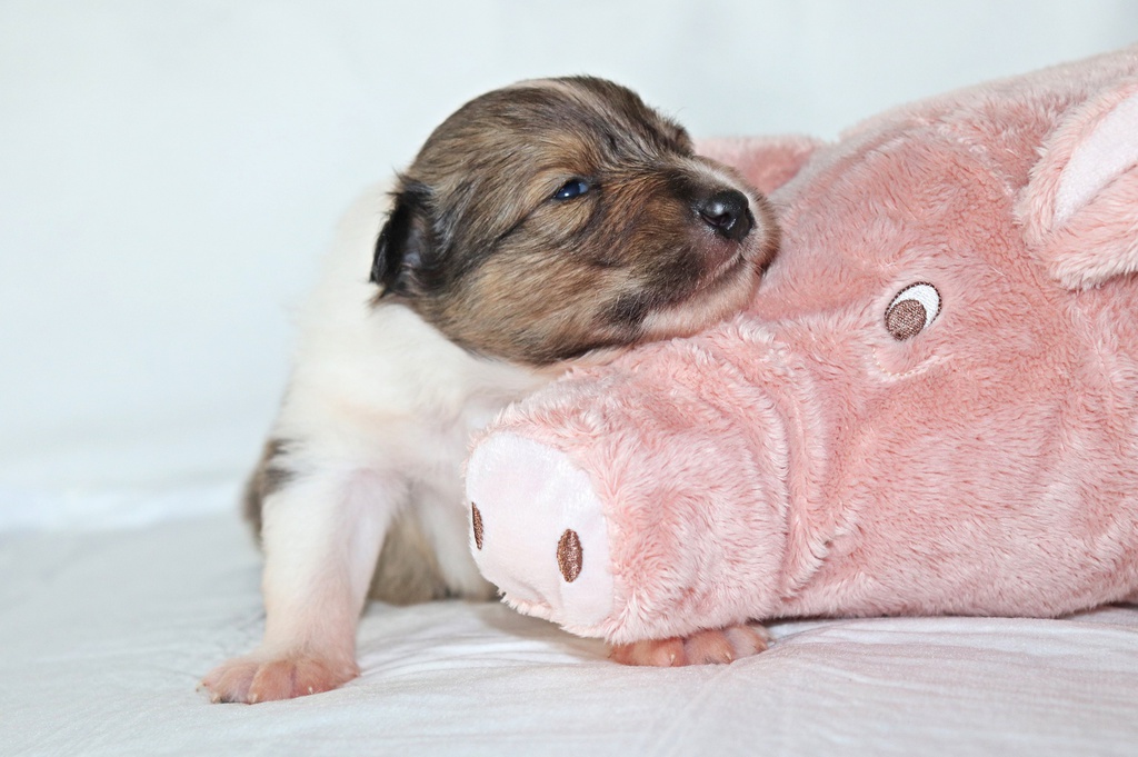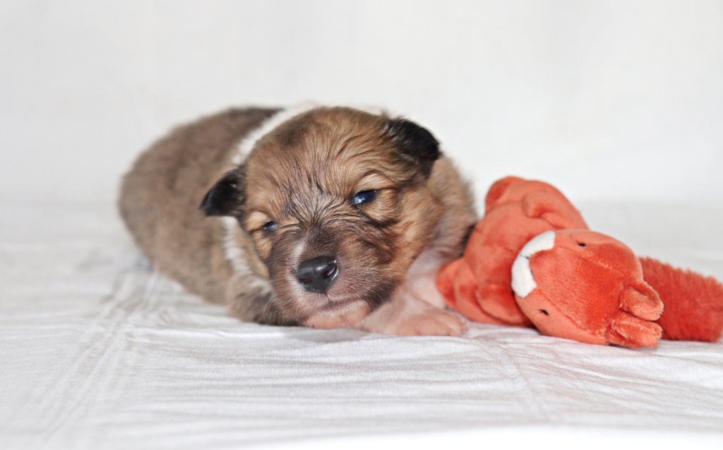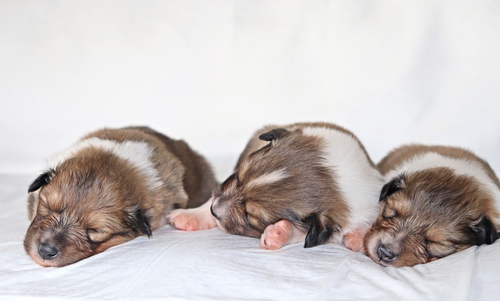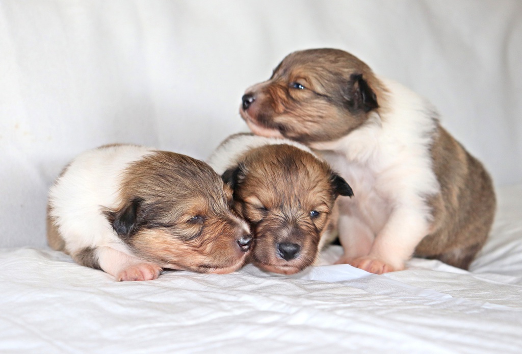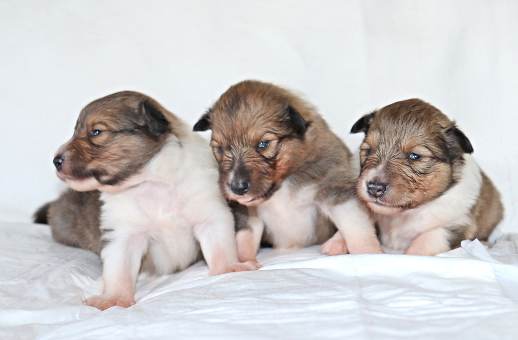 Mächtig was los hier! Die Welpen haben in den letzten 14 Tagen kräftig zugenommen, sie wiegen jetzt zwischen 970 bis 1010 Gramm. Auch die Äuglein haben sie bereits geöffnet und erste Stand- und Laufversuche werden in der Wurfkiste gestartet. Alles natürlich unter den wachsamen Augen von Mama Cleo, die sich rührend um ihr Trio kümmert.