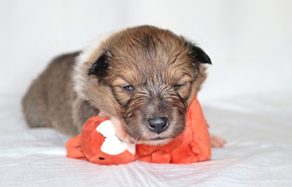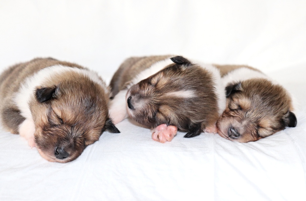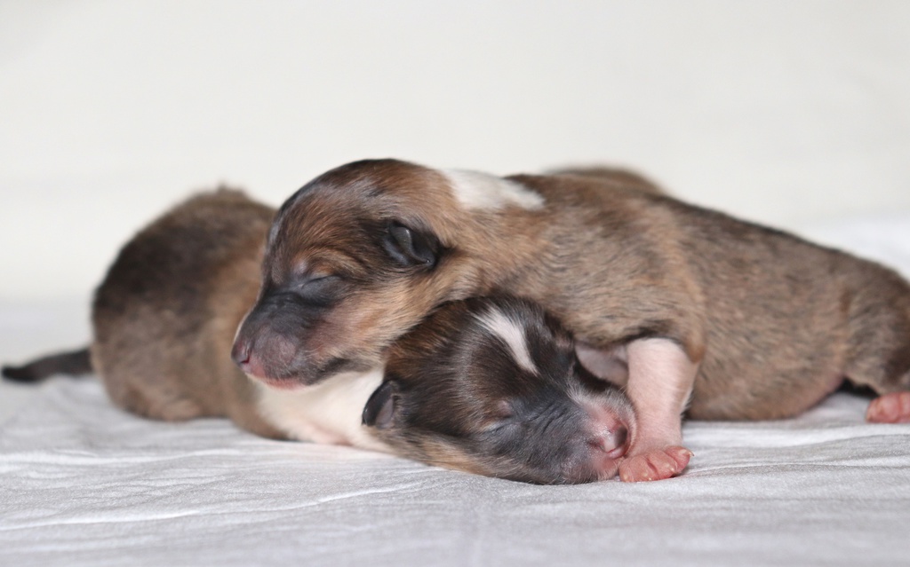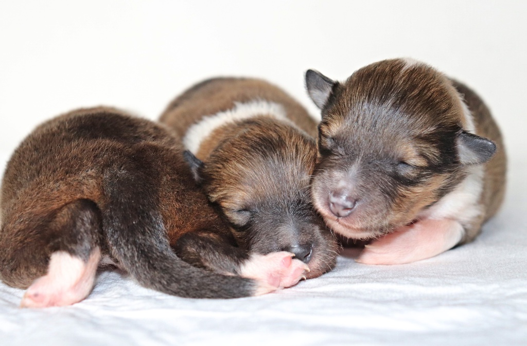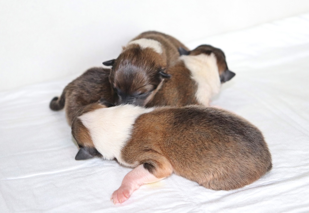 In den frühen Morgenstunden ist unser G-Wurf von unserer Hündin Cleo zur Welt gekommen. Die Geburt verlief entspannt ab, es sind insgesamt 3 Welpen geboren worden. Die Geburtsgewichte liegen bei 170 Gramm. Es sind 1 Junge und 2 Mädchen in sablefarben gefallen. Cleo kümmert sich um ihr Trio ganz liebevoll.