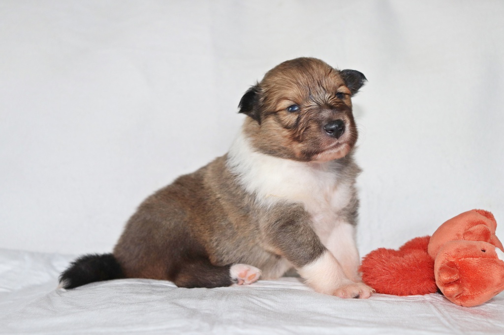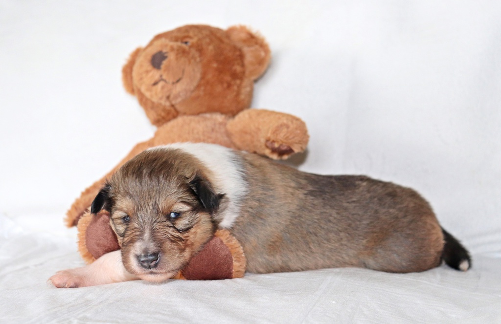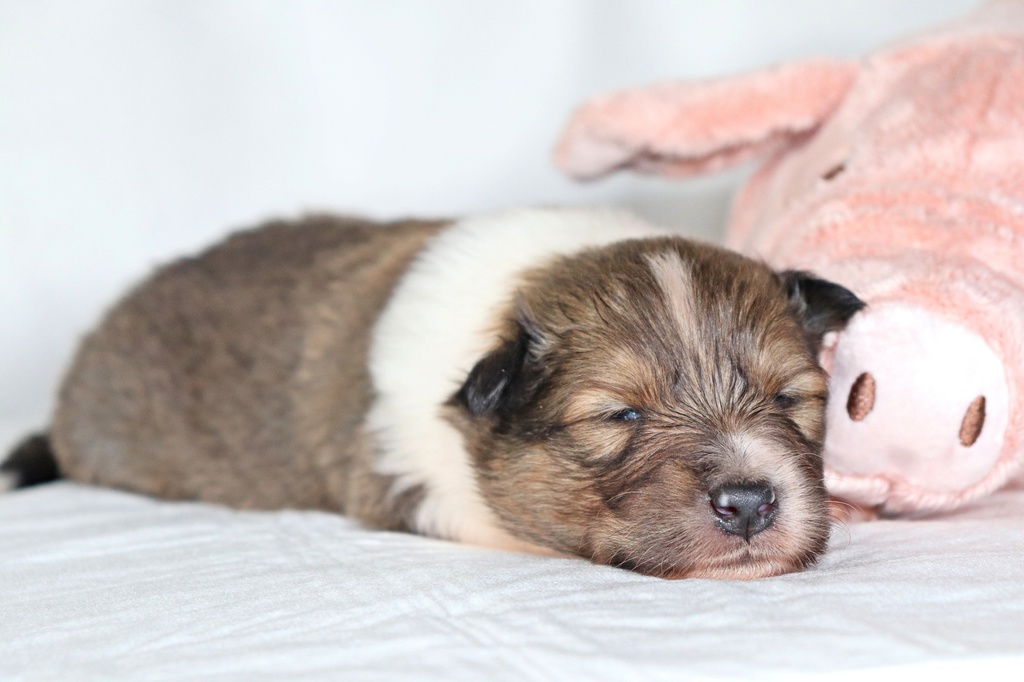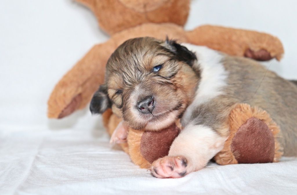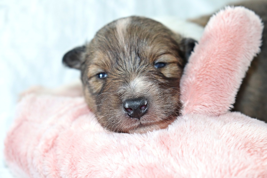 In den frühen Morgenstunden ist unser G-Wurf von unserer Hündin Cleo zur Welt gekommen. Die Geburt verlief entspannt ab, es sind insgesamt 3 Welpen geboren worden. Die Geburtsgewichte liegen bei 170 Gramm. Es sind 1 Junge und 2 Mädchen in sablefarben gefallen. Cleo kümmert sich um ihr Trio ganz liebevoll.