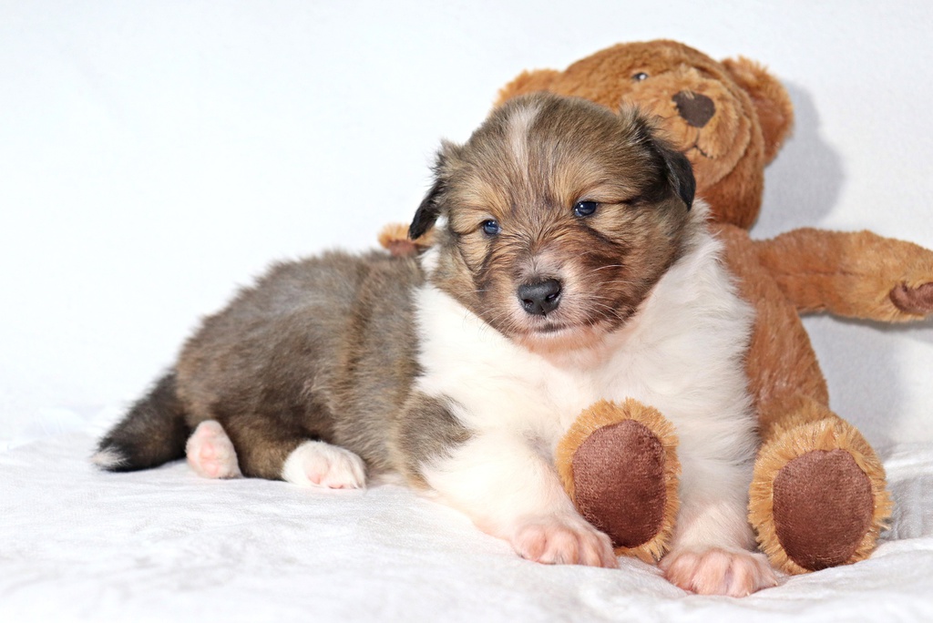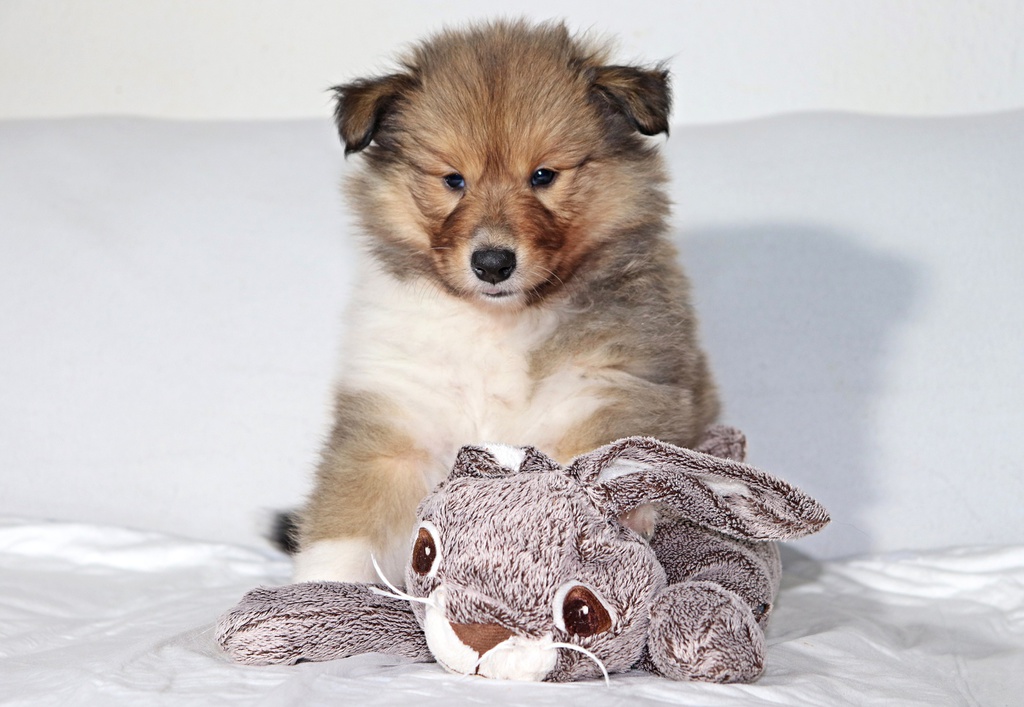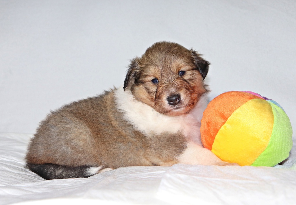 Die Krabbelgruppe in Aktion! Unsere 4 Monate alte Berry spielt mit unseren Welpen ganz liebevoll. Der Altersunterschied beträgt gerade mal 3 Monate, da sieht man wie schnell die Welpen wachsen und sich verändern. Auf dem Bild ist die Freude auf beiden Seiten unverkennbar.