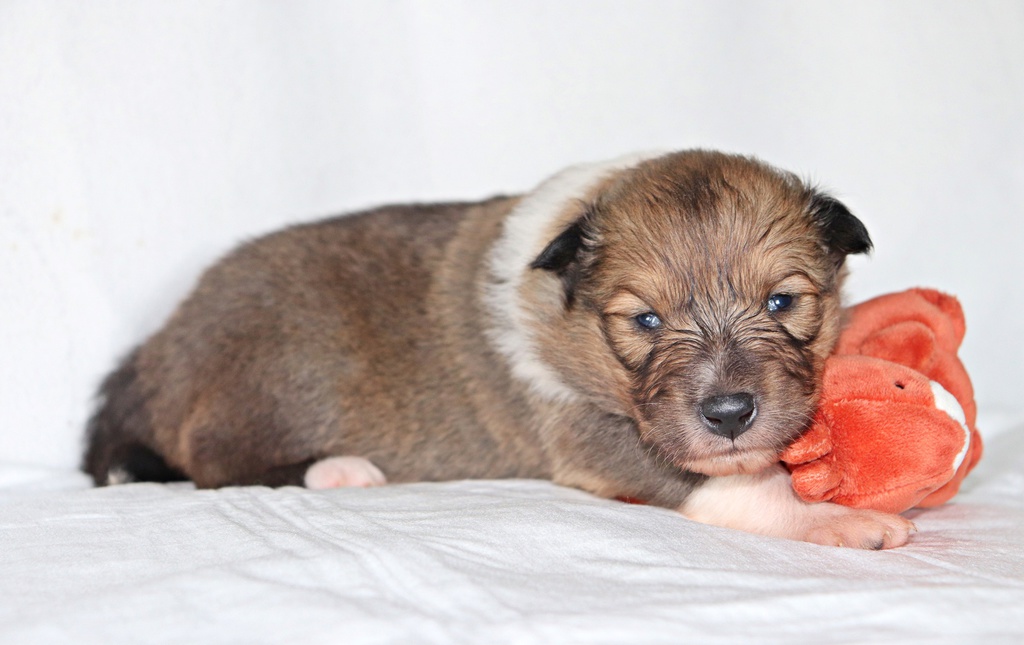 Der verschmuste Colliejunge Gizmo ist zu Familie Raithel nach Selbitz in Bayern gezogen.